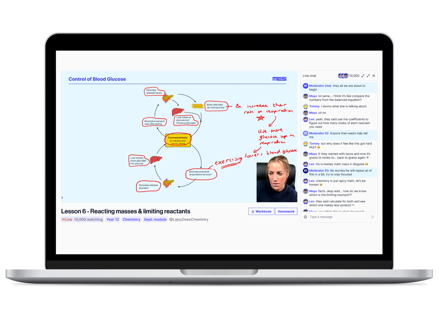 Questions and comments in the live chat are actively monitored and answered by either the teacher or their teaching assistants. In fact, each student interacts in the chat an average of 25 times! We'd love for you to see how fun and engaging these chats become during the lessons.