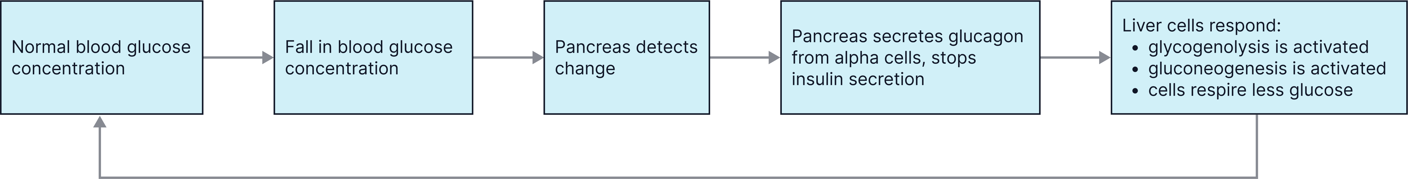 - Result: Blood glucose rises back to normal (negative feedback).