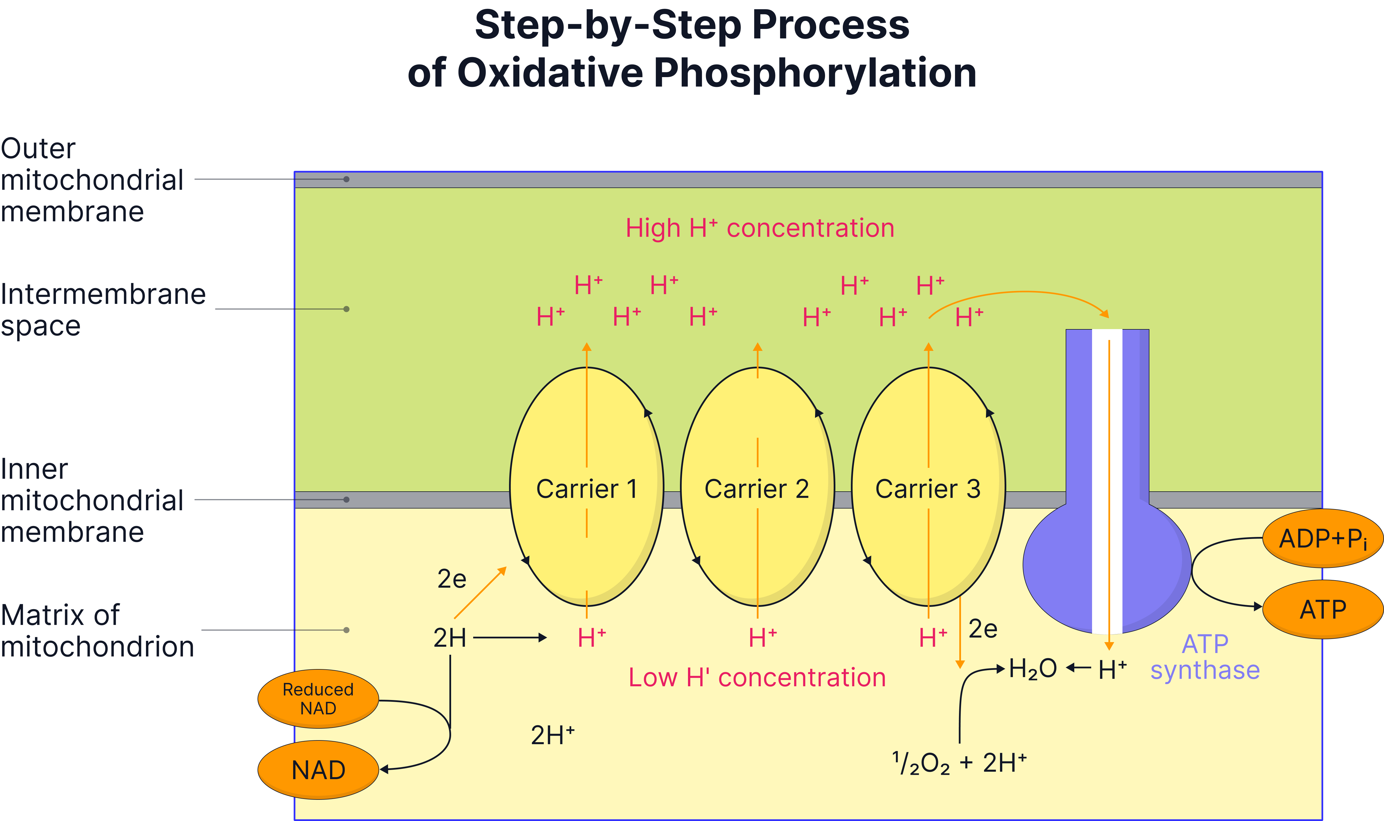 Note: Actual ATP yield may vary due to mitochondrial membrane leakage and energy used for transporting ADP/Pi.