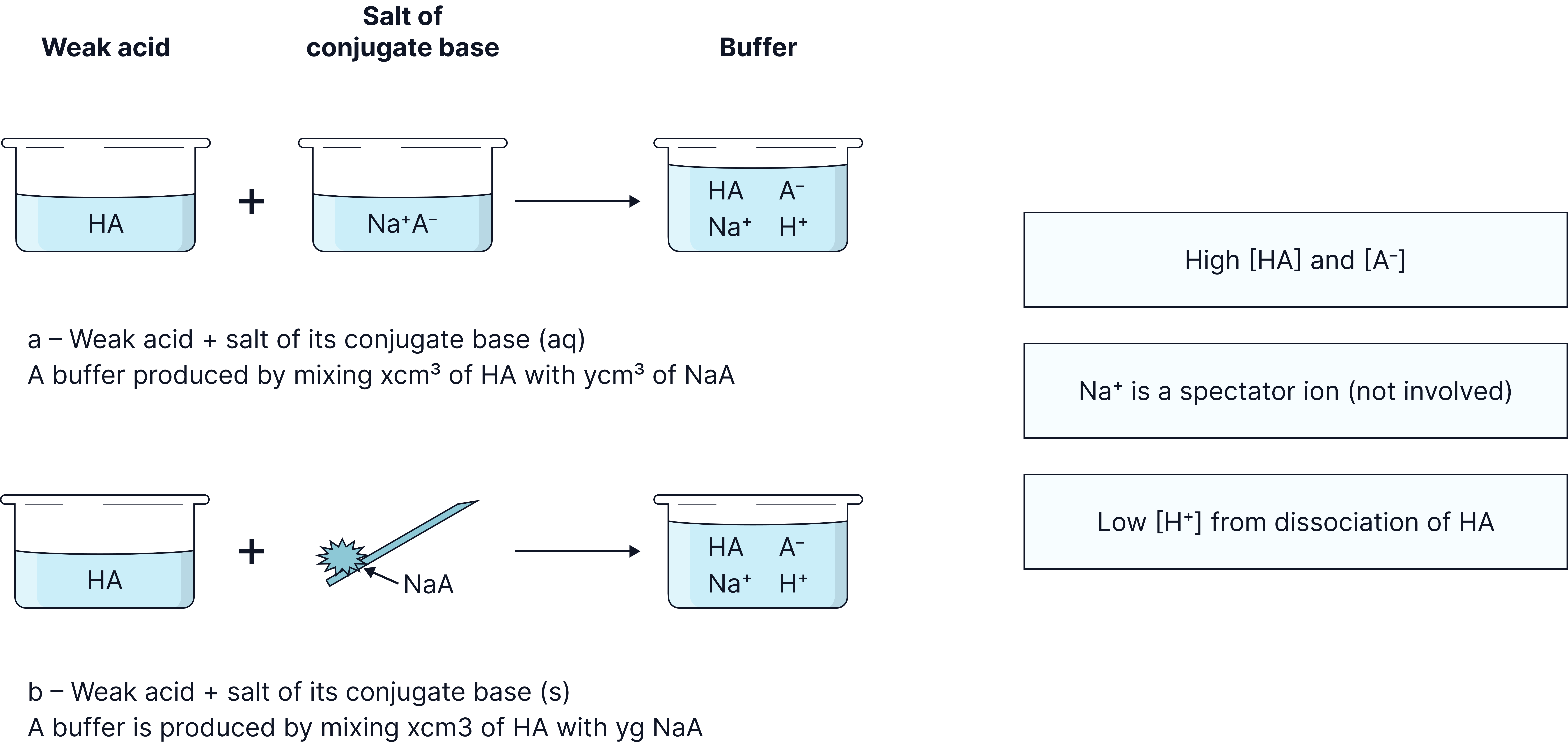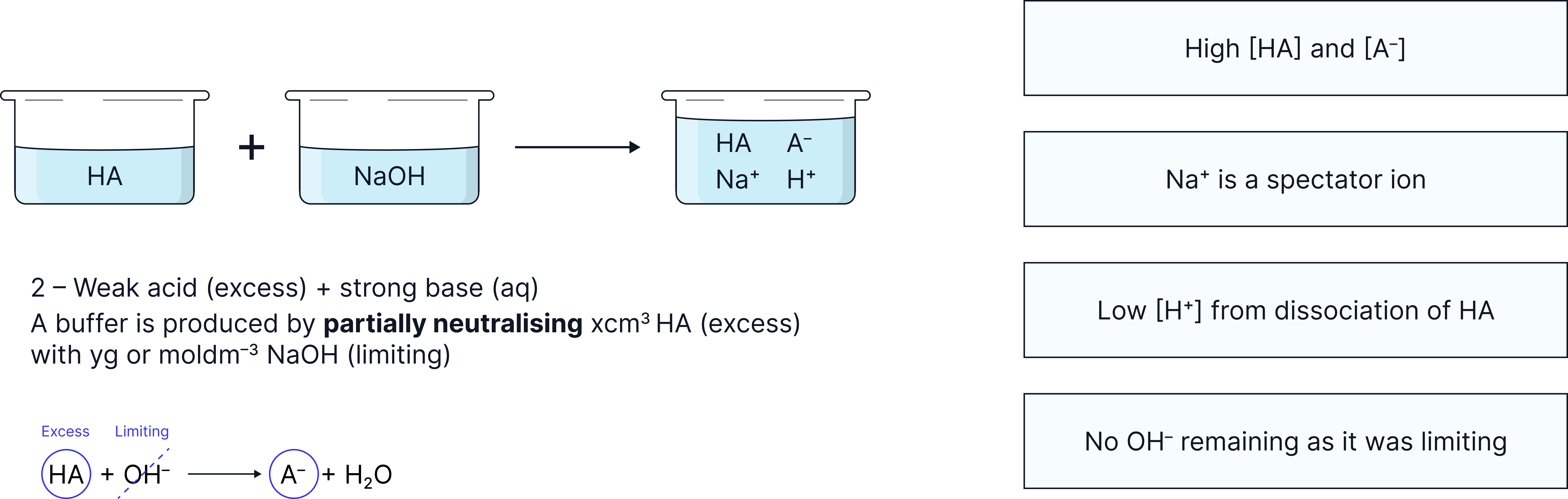 Basic buffer: Formed from a weak base and its conjugate acid e.g. and (calculations NOT required).