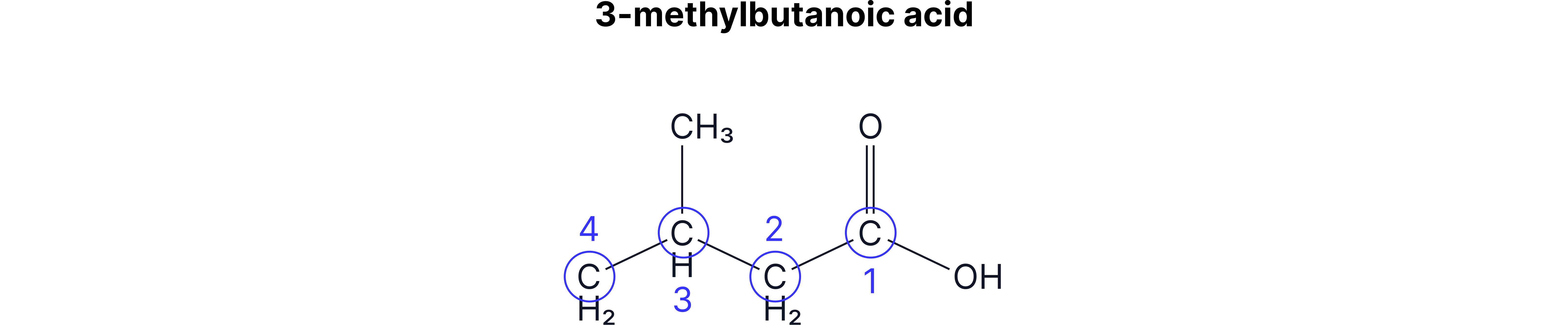 When naming carboxylic acids, you name the rest of the chain as usual (number 1 starts from the carboxylic acid C) and add –oic acid to the end.