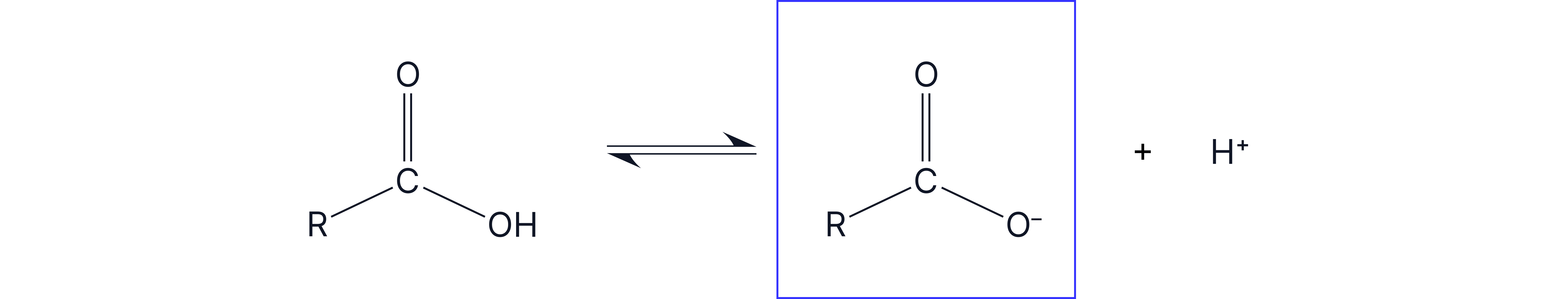 The driving force of this dissociation is the delocalisation of the carboxylate ion. In reality, the negative charge on the oxygen is spread out and distributed over the O-C-O bond, creating a cloud of π electrons.