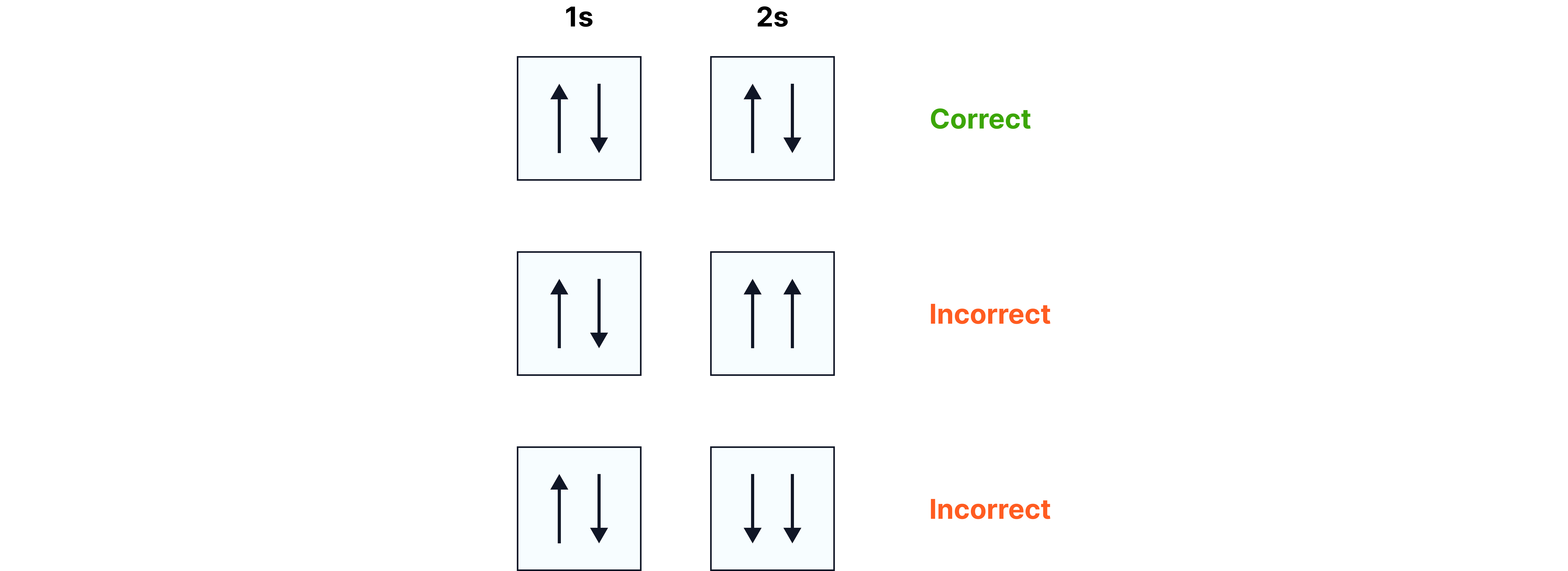 Pauli exclusion principle: no two electrons in the same orbital can have the same spin.