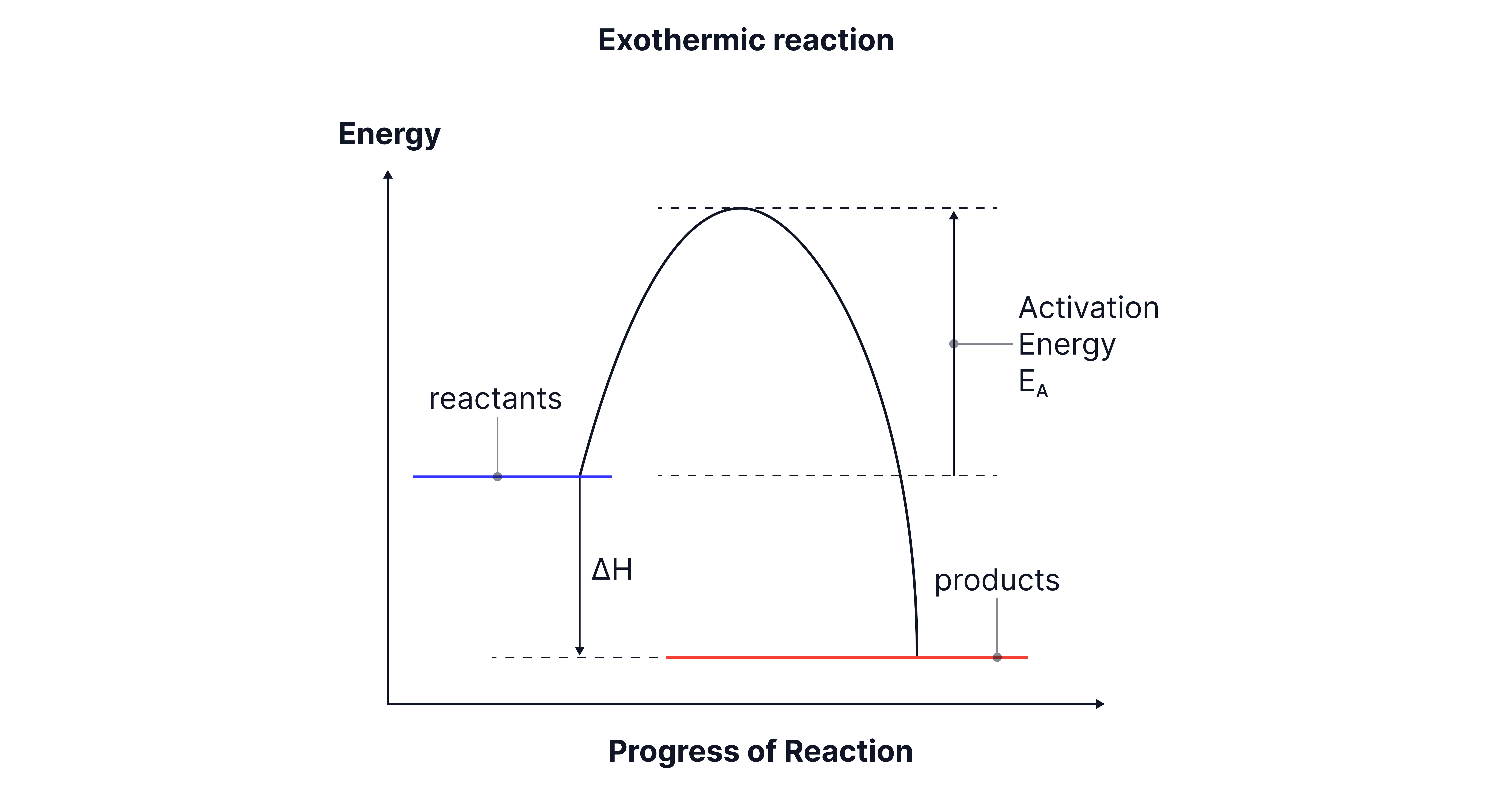 These diagrams plot enthalpy (y-axis) against progress of reaction (x-axis) to show how energy changes as reactants turn into products.