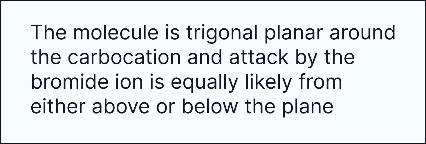 As a result, the products are formed in a 50:50 ratio so a racemate forms.