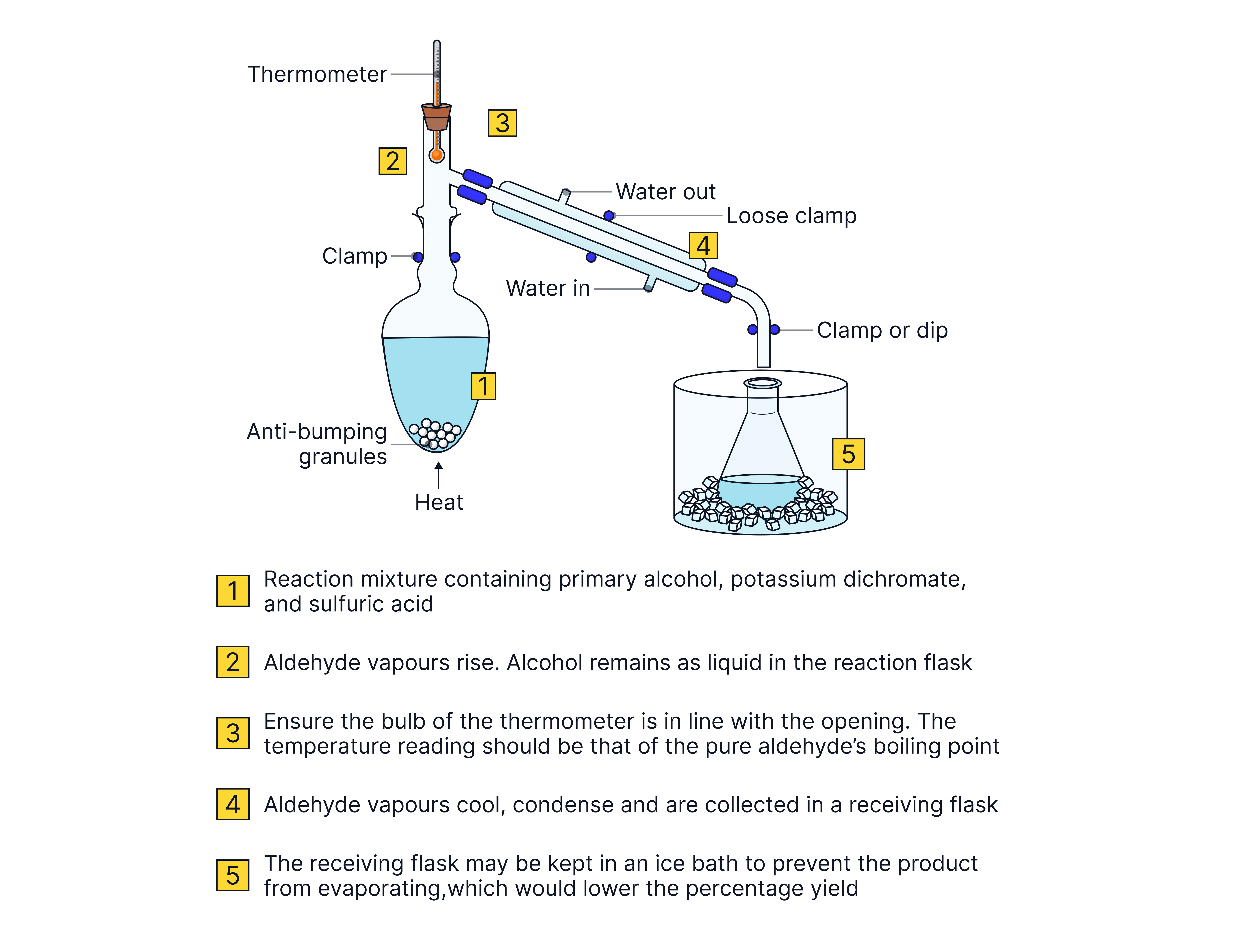 Collection of the distillate should stop if the temperature rises more than 2oC above the boiling point of the aldehyde.