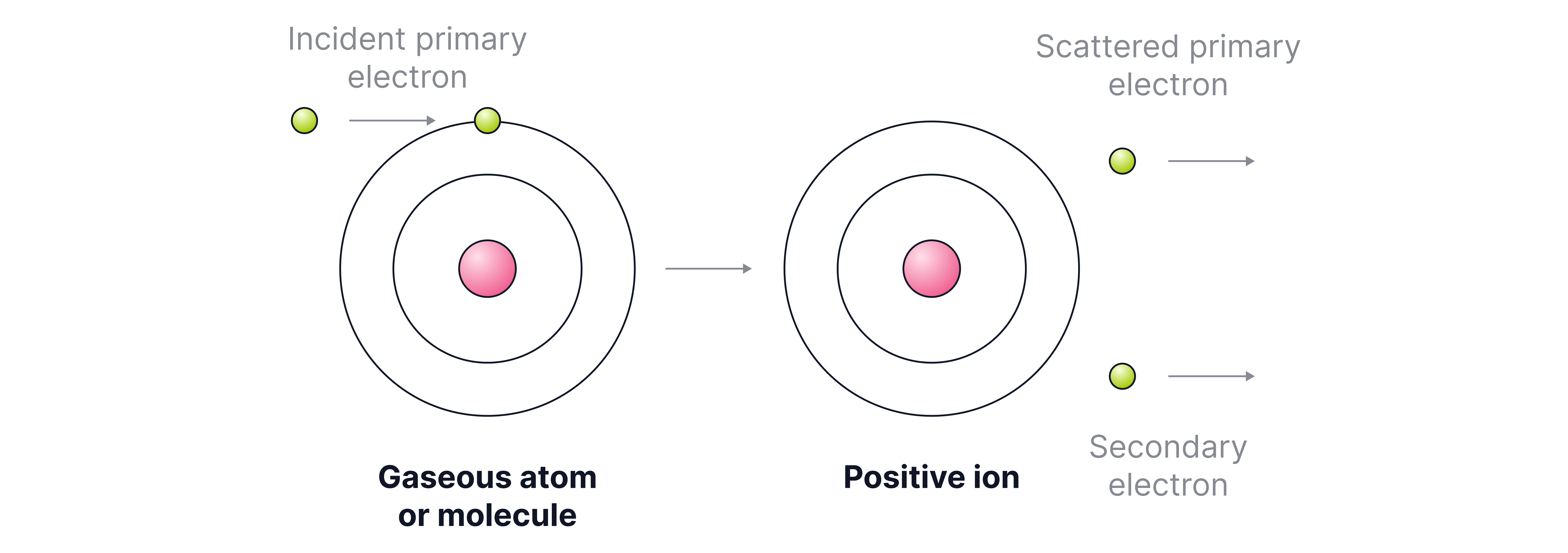 2. This removes an electron, forming positive ions.