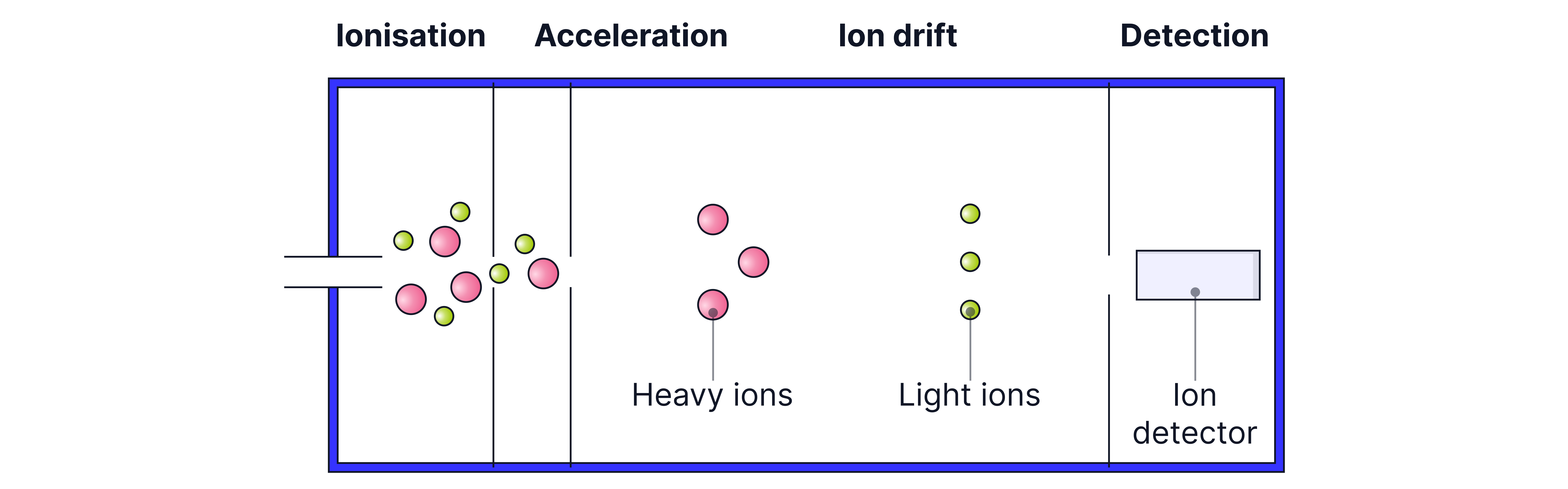 Ions move through a drift region where no forces act on them.