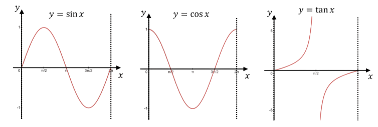 To answer this, we need to know the period of a graph. The period is the time it takes to complete one full cycle of the graph. For sine and cosine graphs, the period is , while for tangent graphs, it is (as shown in the graphs below where the dotted lines represent the start/end of a cycle).