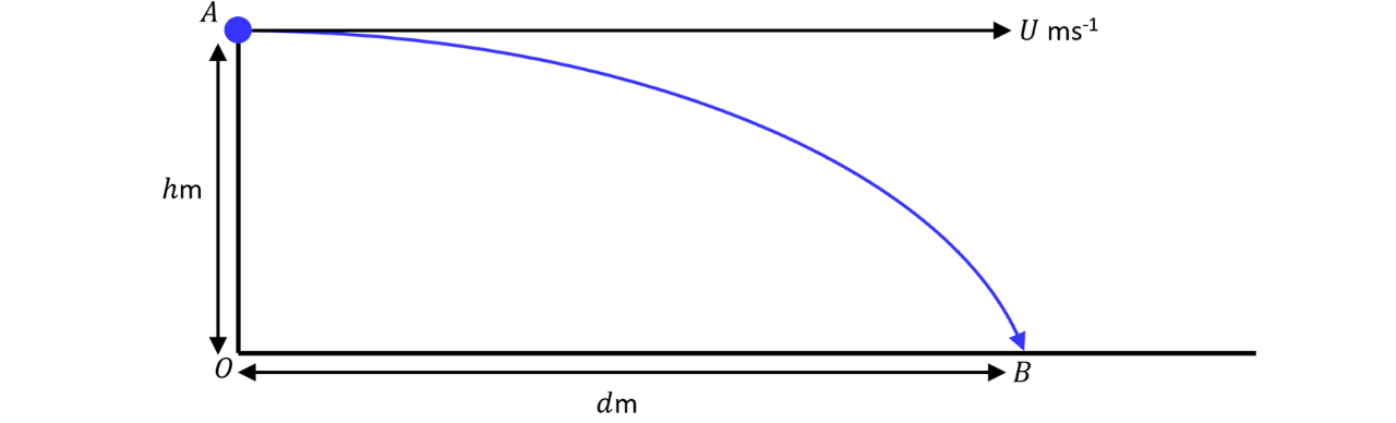 The diagram below illustrates a general case of a horizontal projection, where a particle is projected from a point , which is metres above level horizontal ground, with initial horizontal velocity