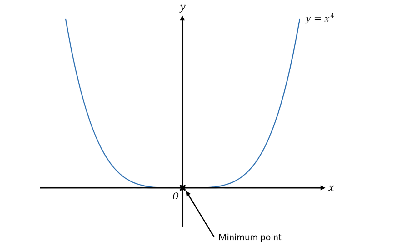 , , but it is actually the minimum point of the graph. Here’s the graph of to show this.