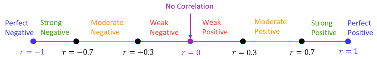 • No correlation: no linear relationship between the variables.