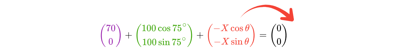 Because the system is in equilibrium, there is no net force, so the resultant force is . We can use this to form equations for and .
