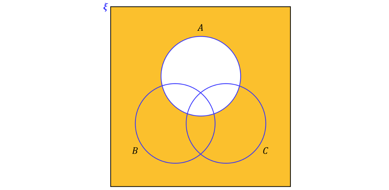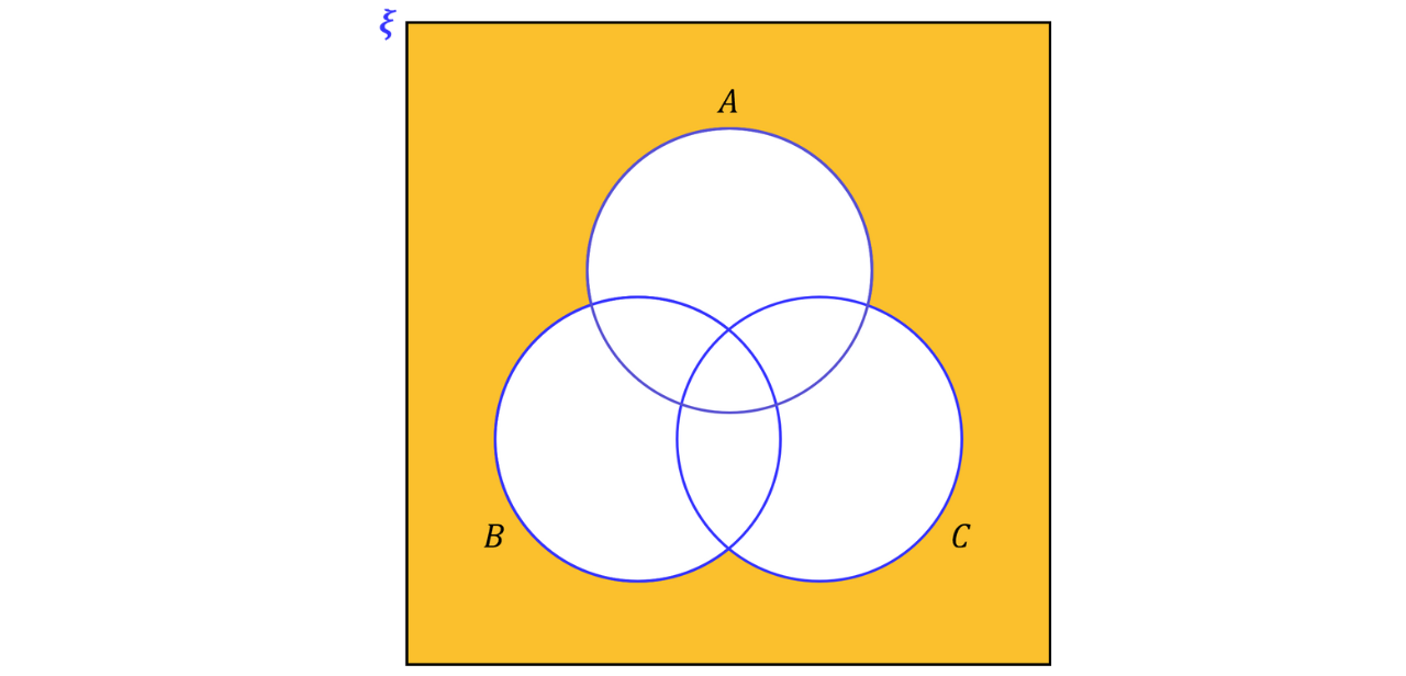 This region can be written as since the elements are outside all three sets. However, this can be rewritten as .