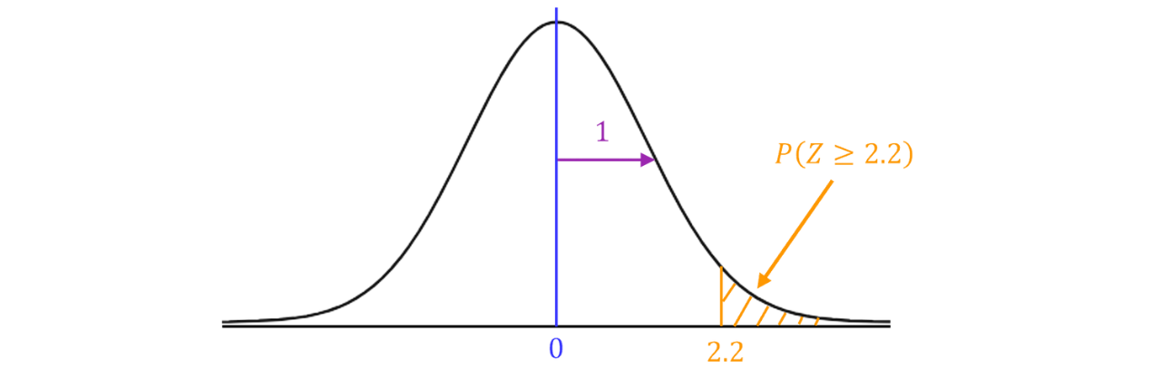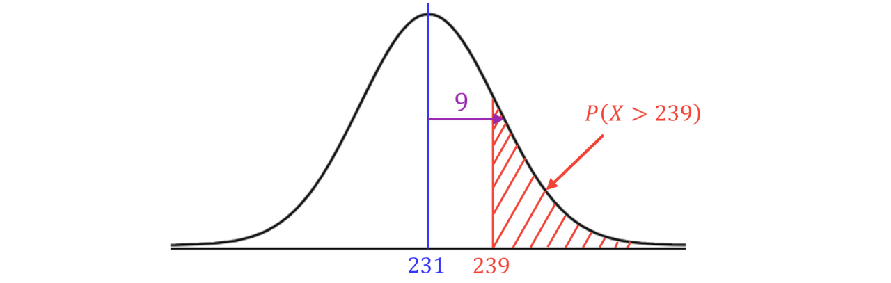 Firstly, here’s a diagram representing this distribution and showing the area we want to find.