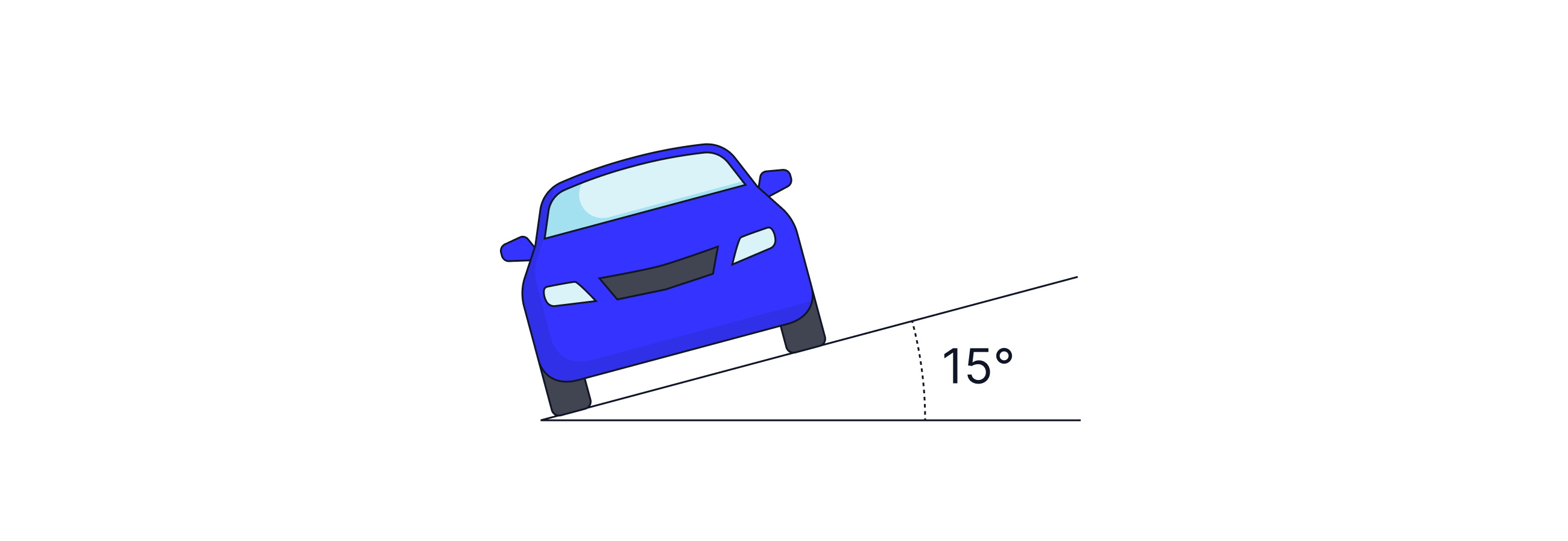 On motorways the roads are sloped so cars are less likely to move out of their lane. The car has a mass of and is banked at , with a radius of . What speed signs are put up so friction down the slope is zero?