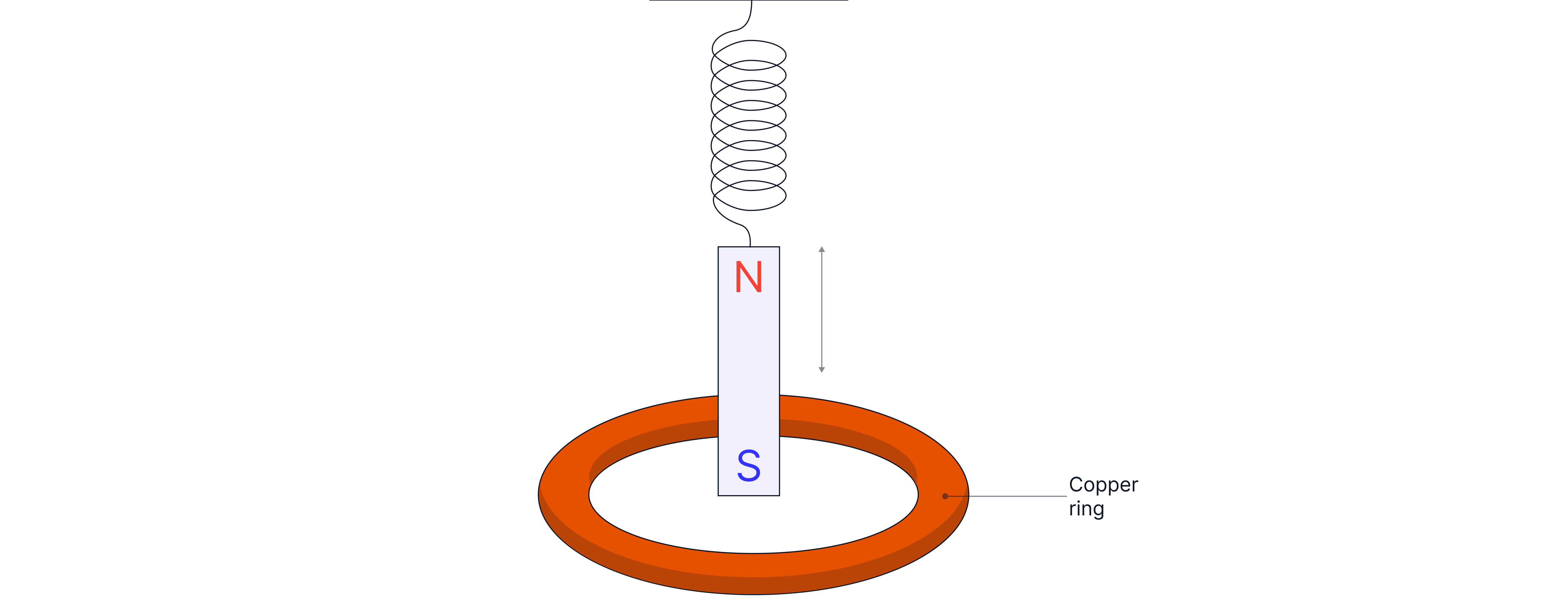 A magnet is displaced vertically and released so it oscillates. The vertical component of the magnetic flux density through the coil varies at a maximum rate . The radius of the copper ring is and the resistance of the copper ring is . Calculate the maximum current in the copper ring.