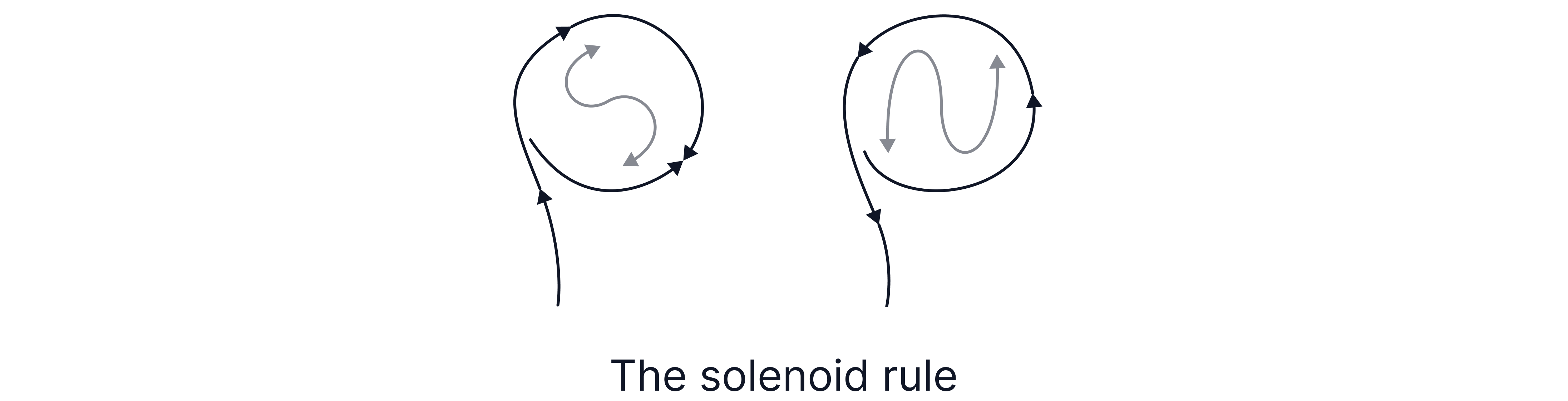 Remember: Current flowing through a wire induces a magnetic field around the wire, with the direction indicated by the right-hand rule. When the wire is wrapped into a solenoid, the solenoid rule can be used to determine the polarity of the magnetic field at that end of the coil.