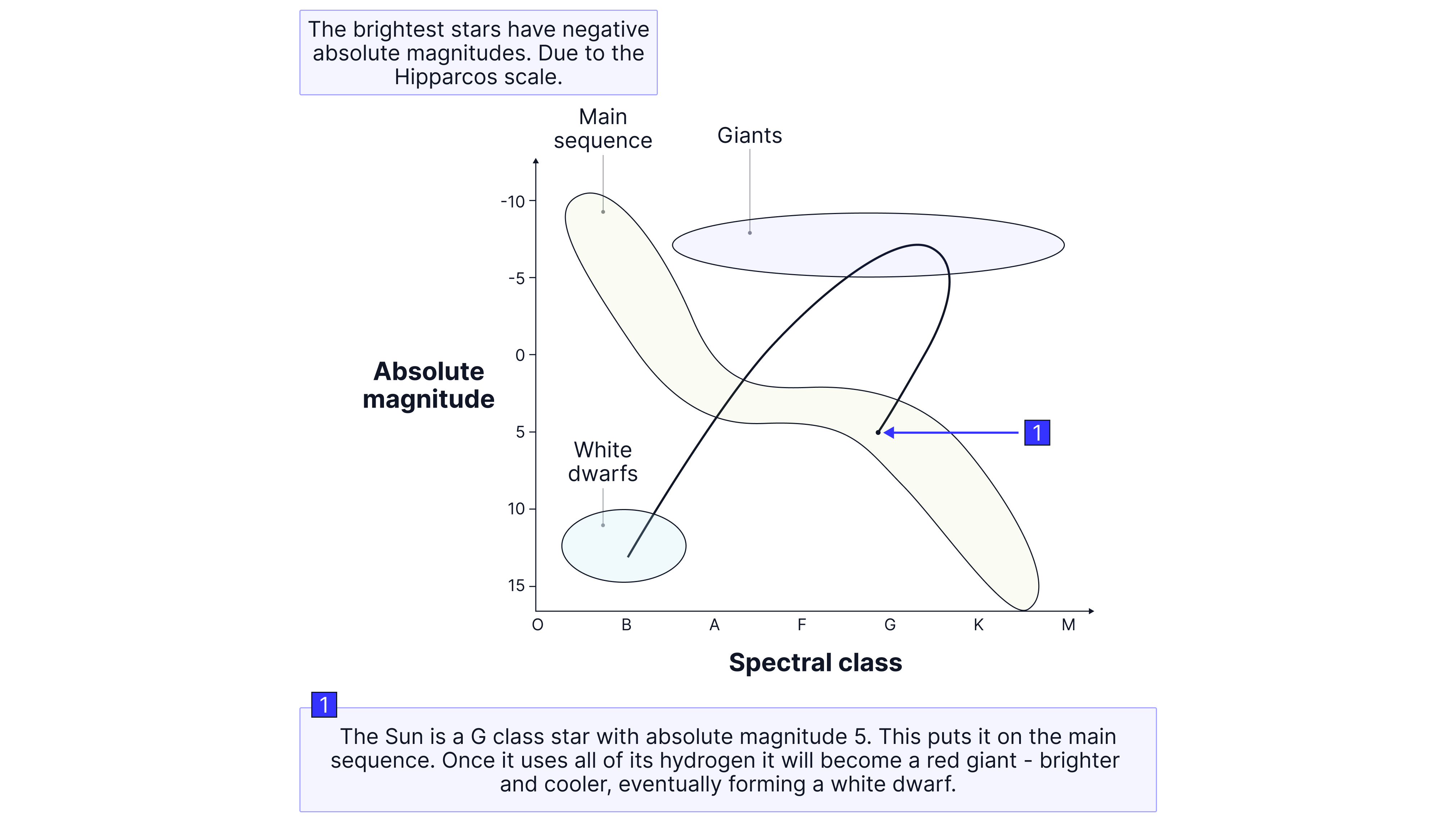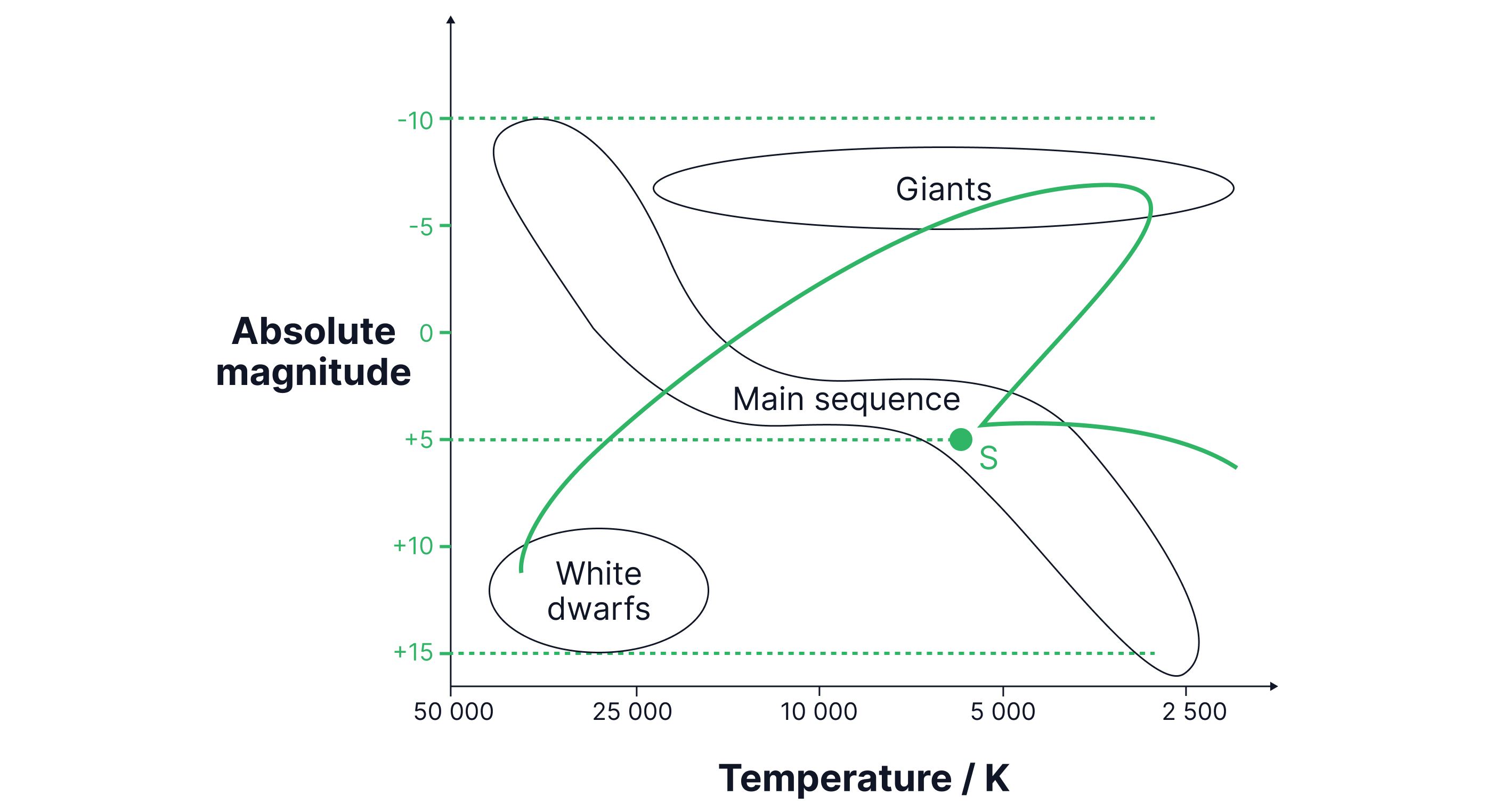Draw a line on the HR diagram to show the evolution of a star similar to the Sun from formation.