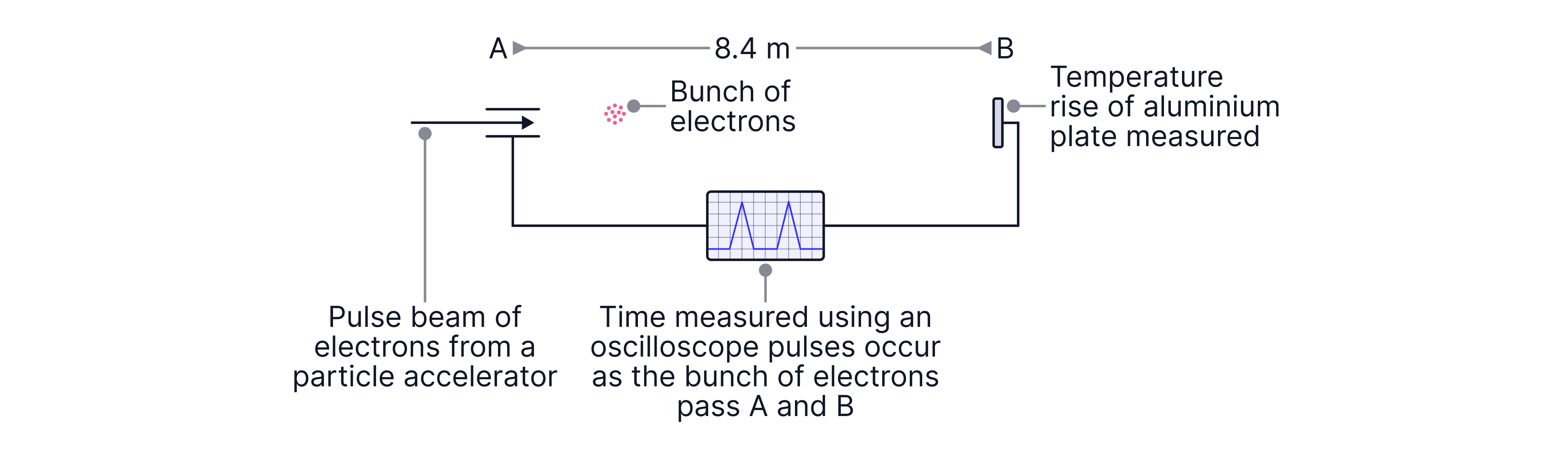 their speed using time-of-flight (electrons pass two points a known distance apart; time measured using pulses on an oscilloscope)