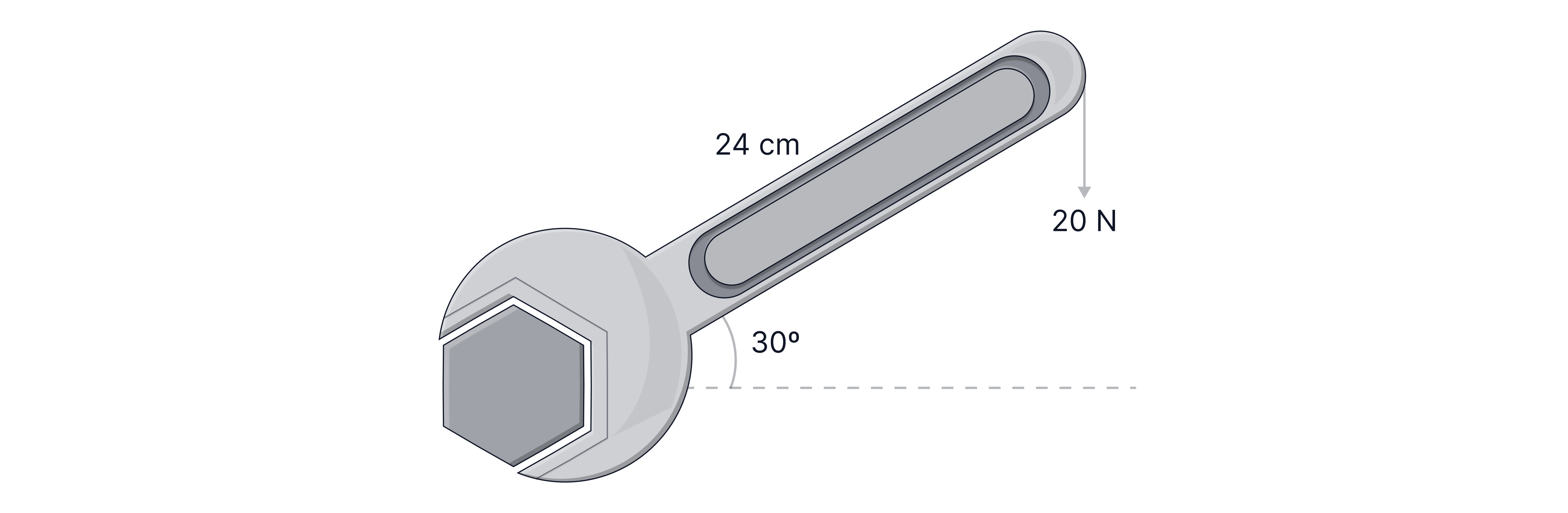 Calculate the size of the clockwise moment on the wrench.