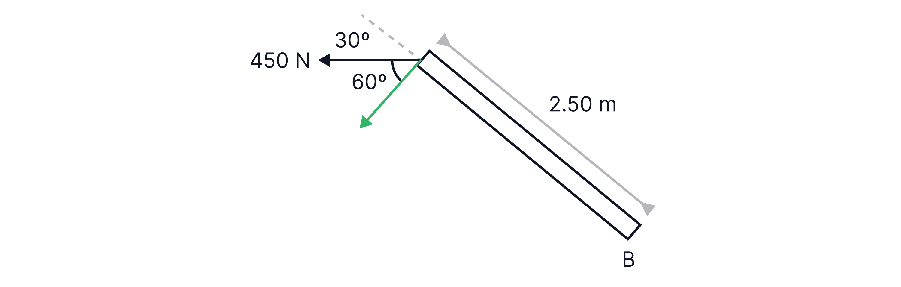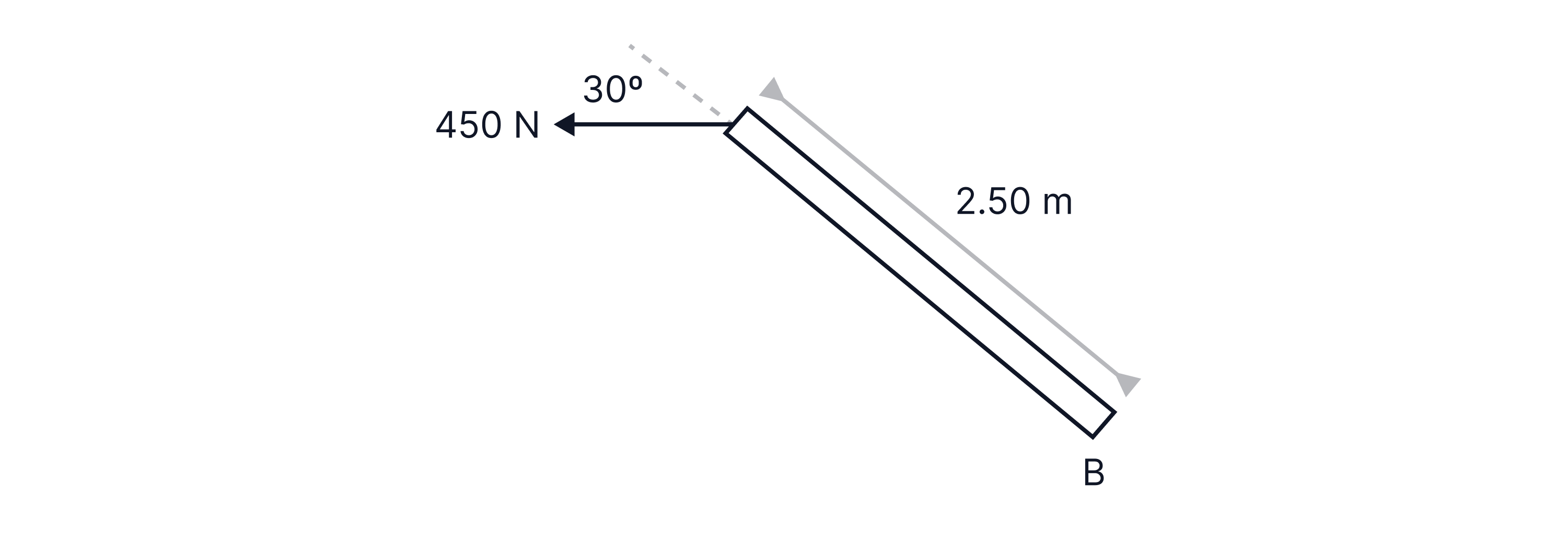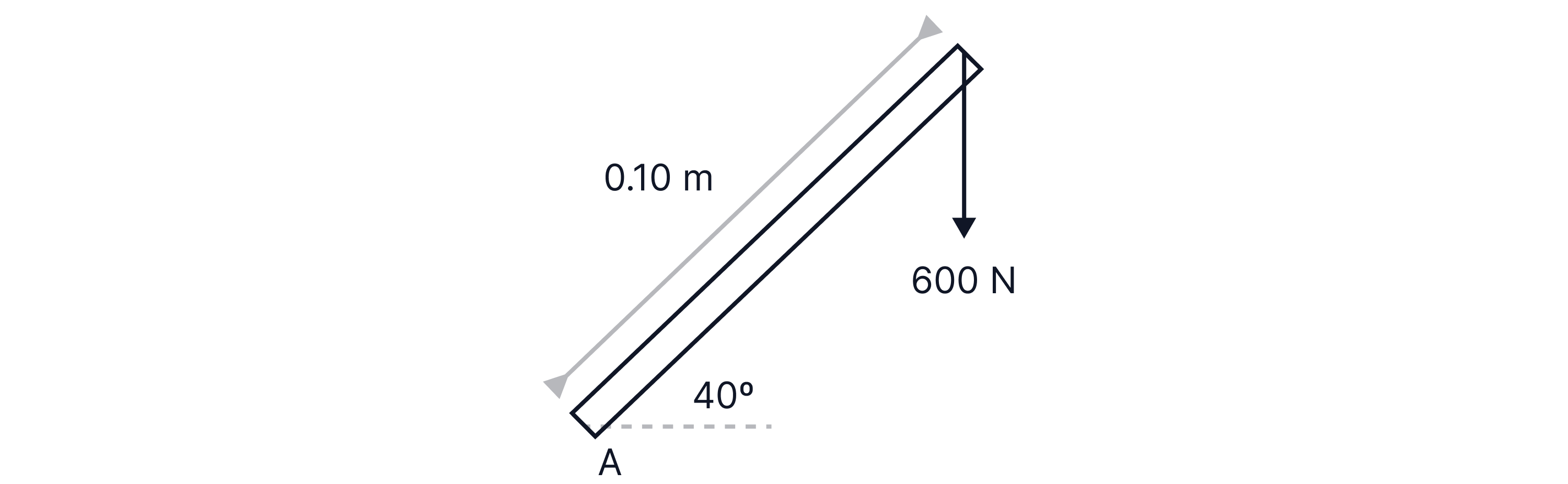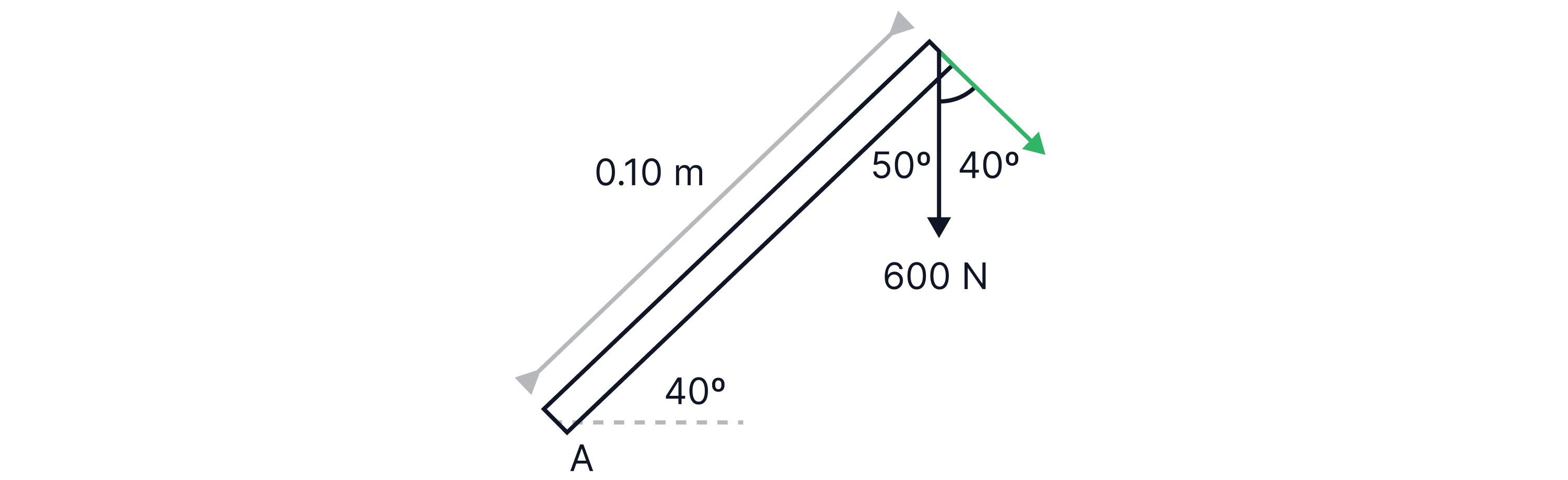 For example, to find the moment acting about point A on the bar below, we first need to resolve the force into its parallel and perpendicular components to the bar.