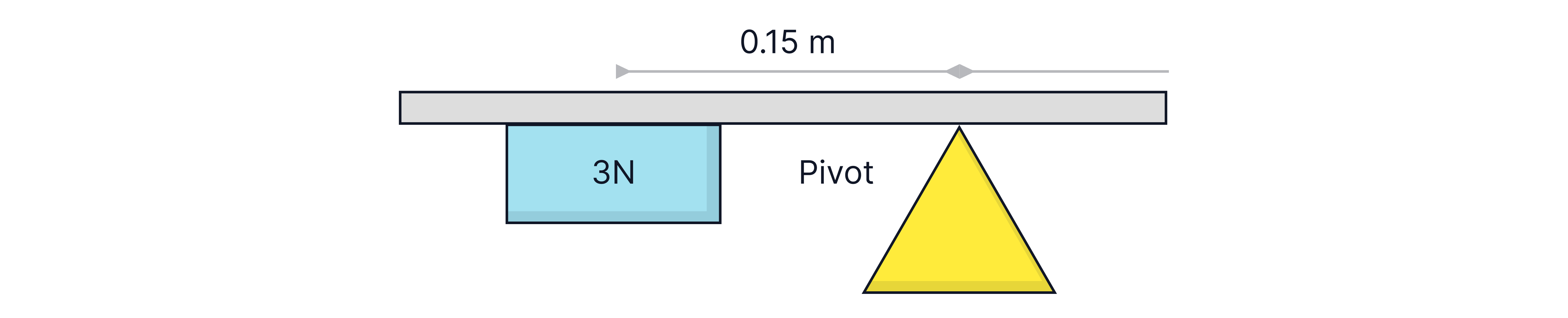 We are going to start by taking moments about the pivot, as we can then ignore any forces that act there.