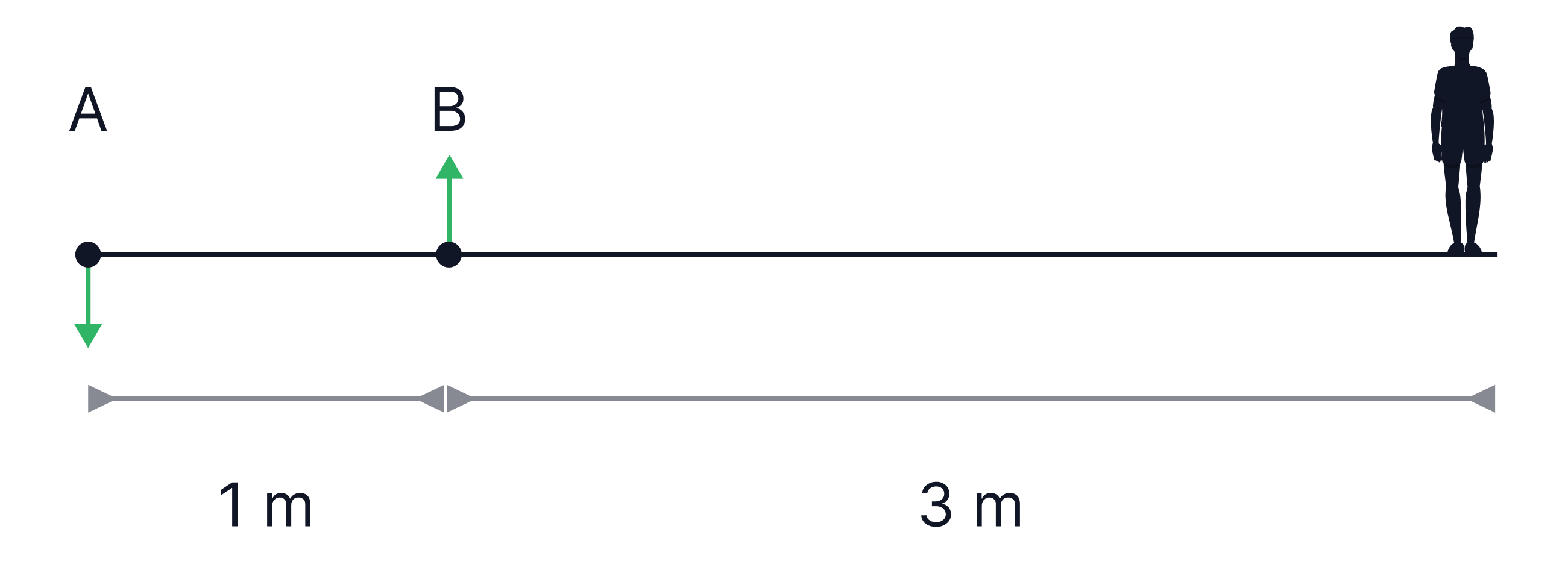 Calculate the moment acting around point B on the bar below: