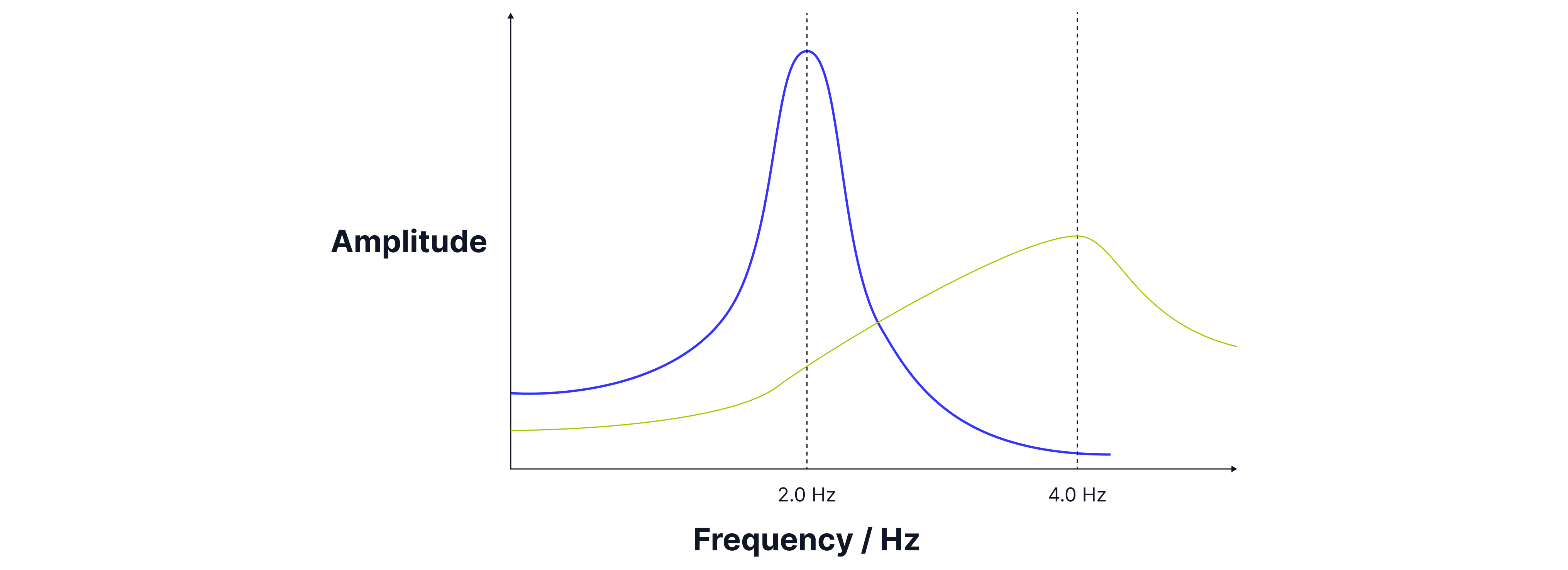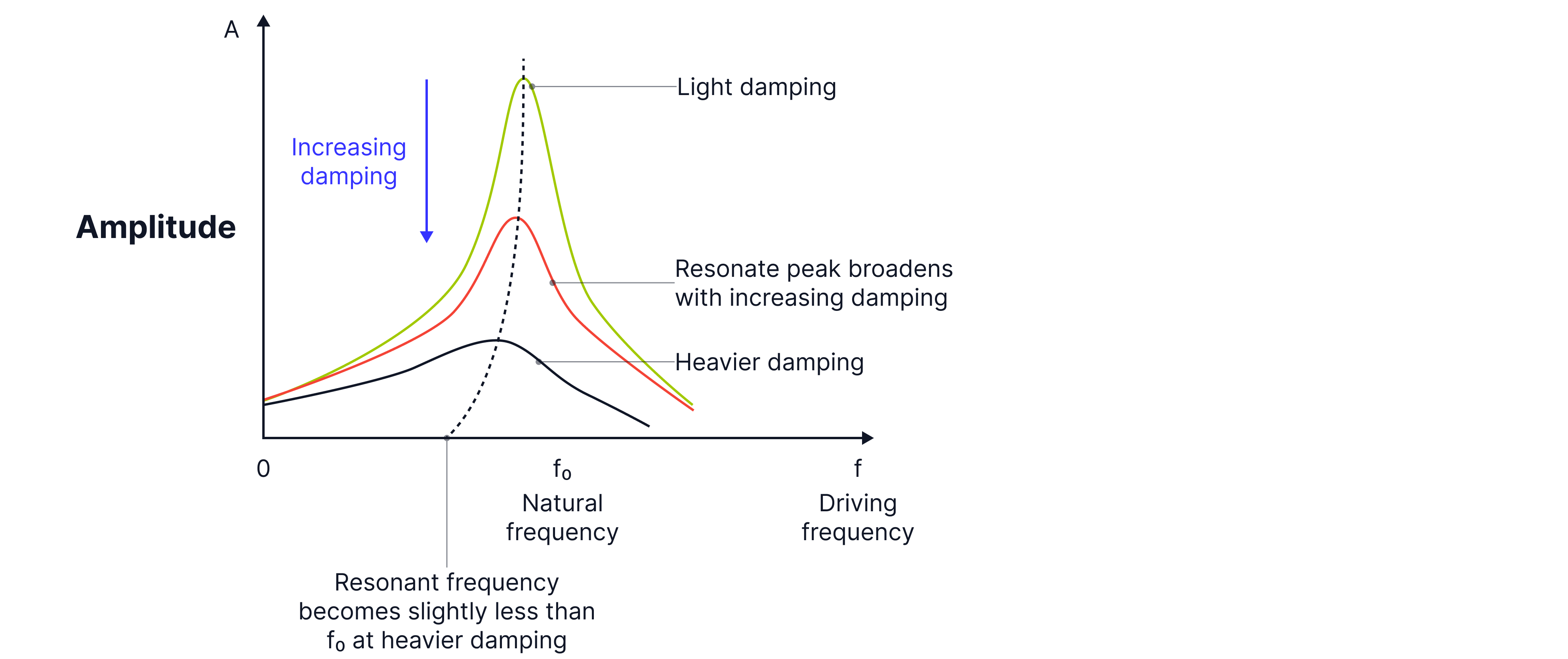 The graph below illustrates that as the driving frequency increases, the amplitude of oscillations increases, reaching a peak when the driving frequency matches the natural frequency. This is known as resonance.
