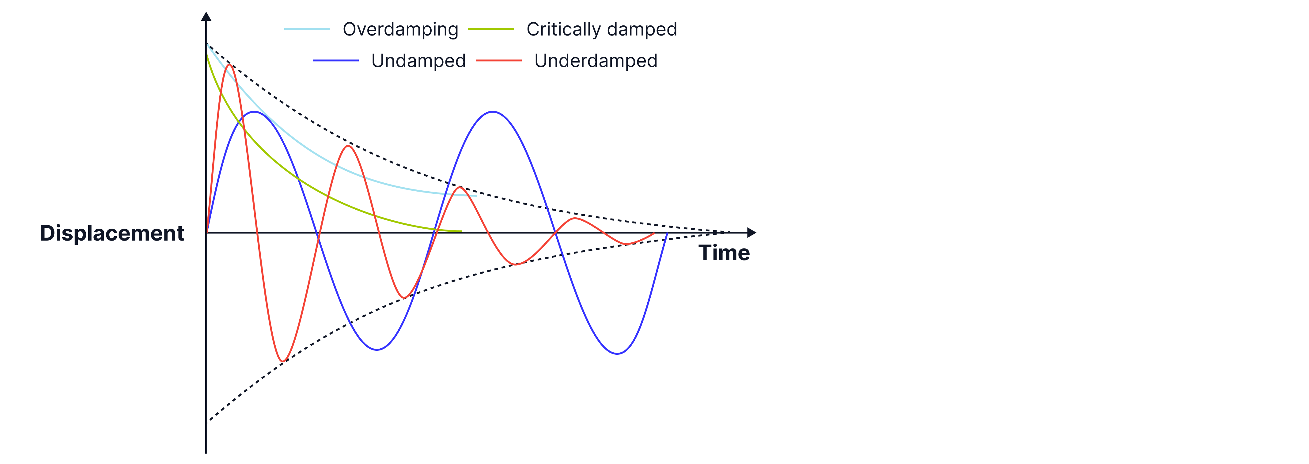 Critical damping: The oscillator returns to its equilibrium position in the quickest possible time. Without overshooting/oscillating. An example of this is shock absorbers, e.g. the suspension in a car.