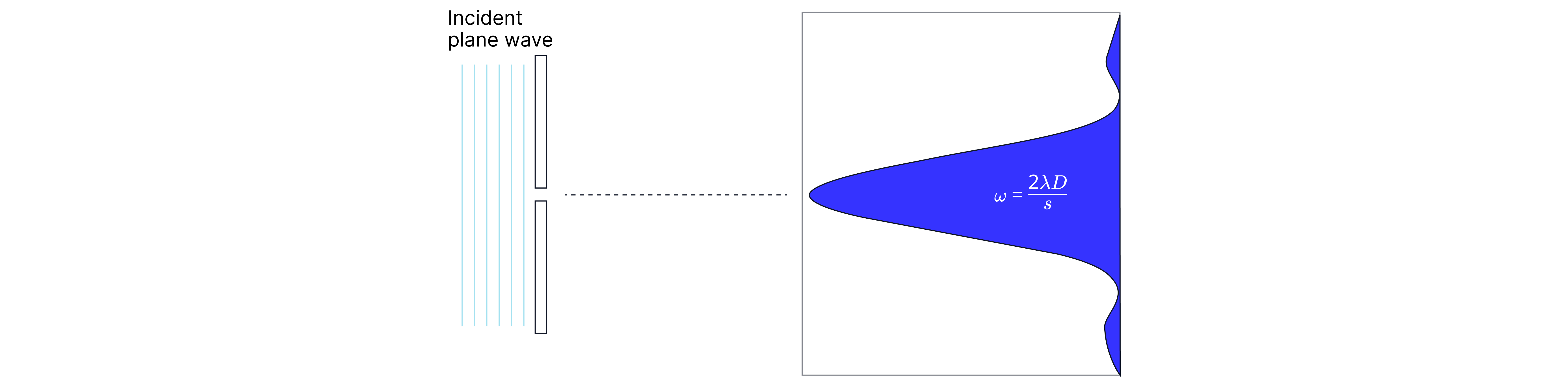 If each fringe spacing, , then the width of the central maximum is two times this, , where is the width of the single slit gap.