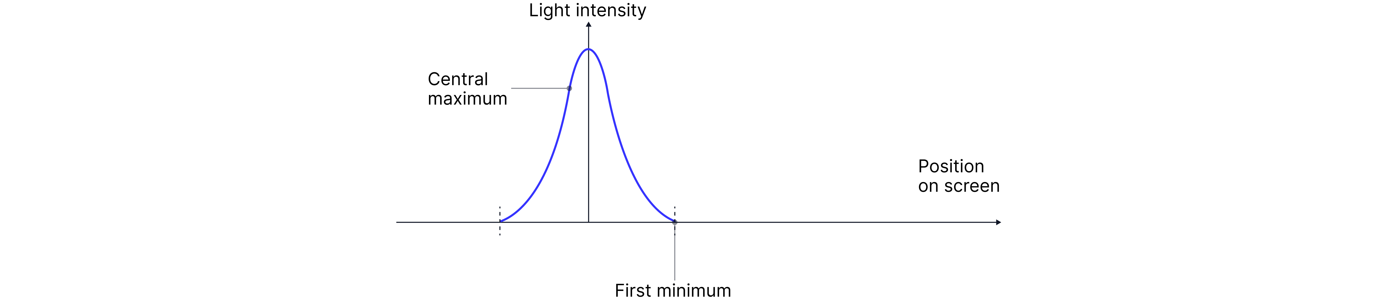 Using a laser, a single slit diffraction pattern is produced on a screen.