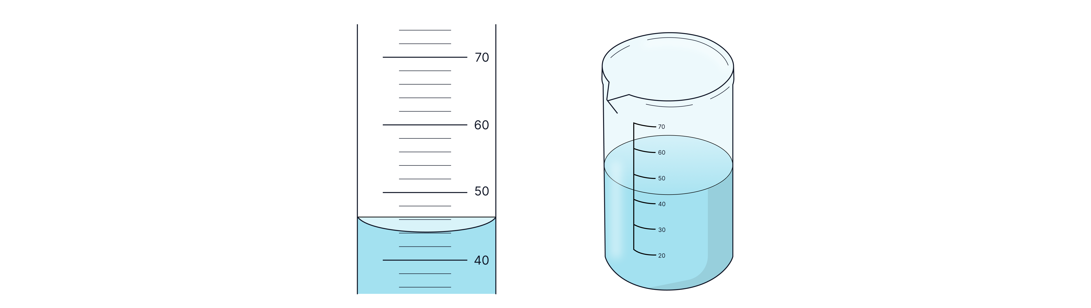 Remember: When recording volume, ensure to read from eye level from the bottom of the meniscus (the bottom of the curve of the liquid) to avoid parallax error. This is also important to note when taking readings from thermometers.