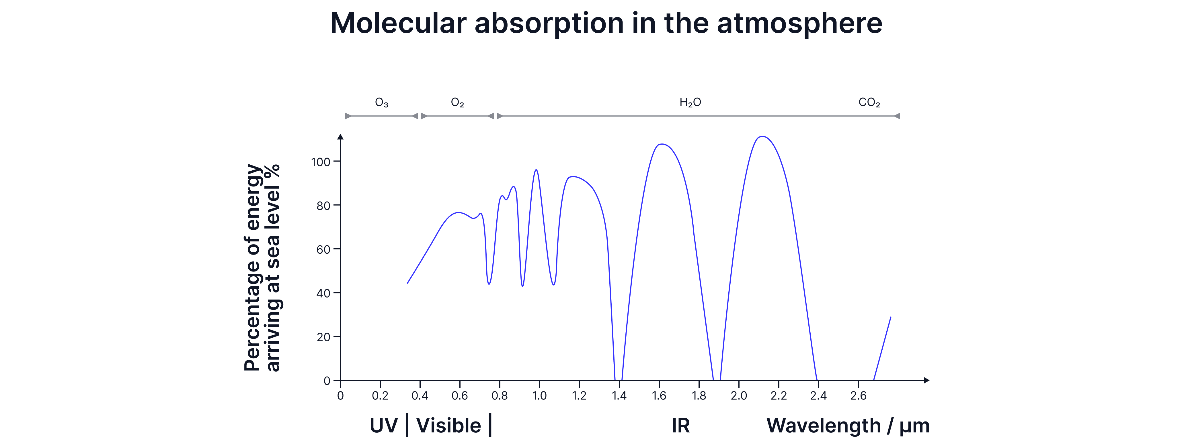 Telescopes must be placed in specific locations depending on the wavelength of light they observe. Telescopes that observe in the gamma region must be placed in space, as gamma rays cannot penetrate the Earth's atmosphere. The atmosphere is % opaque to gamma rays, as shown in the image below. Telescopes that observe in the UV region must also be placed in space, as the Earth's atmosphere absorbs most UV rays.