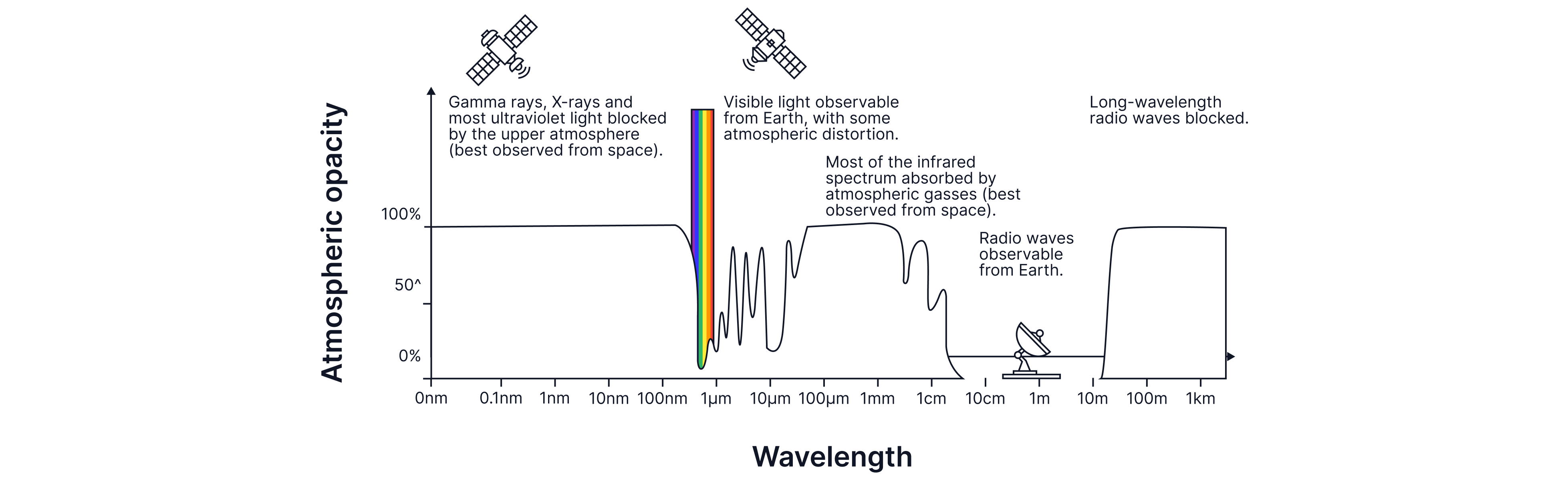 Telescopes that observe in the visible region need to be placed in remote areas to avoid light pollution, which interferes with these optical telescopes.