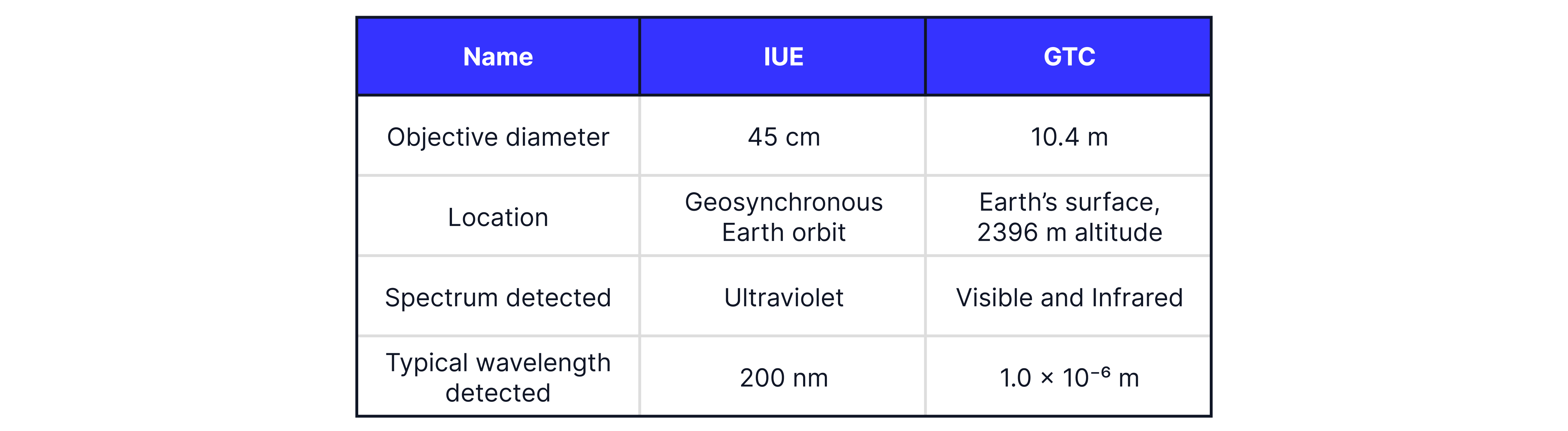 ∴ GTC has more collecting power than the IUE, so it produces brighter images.
