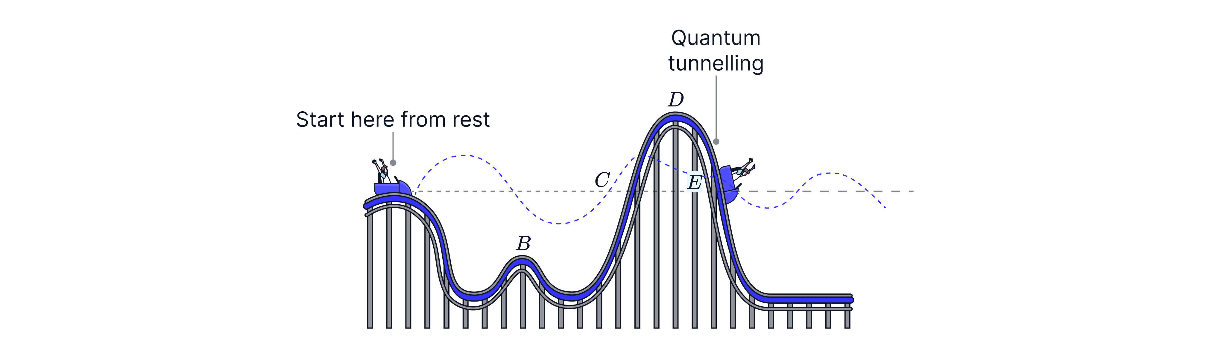 Classically, a particle without enough energy can’t get over a barrier. In quantum physics, electrons have wave properties, and there can be a small probability of appearing on the other side of a thin barrier — this is quantum tunnelling.