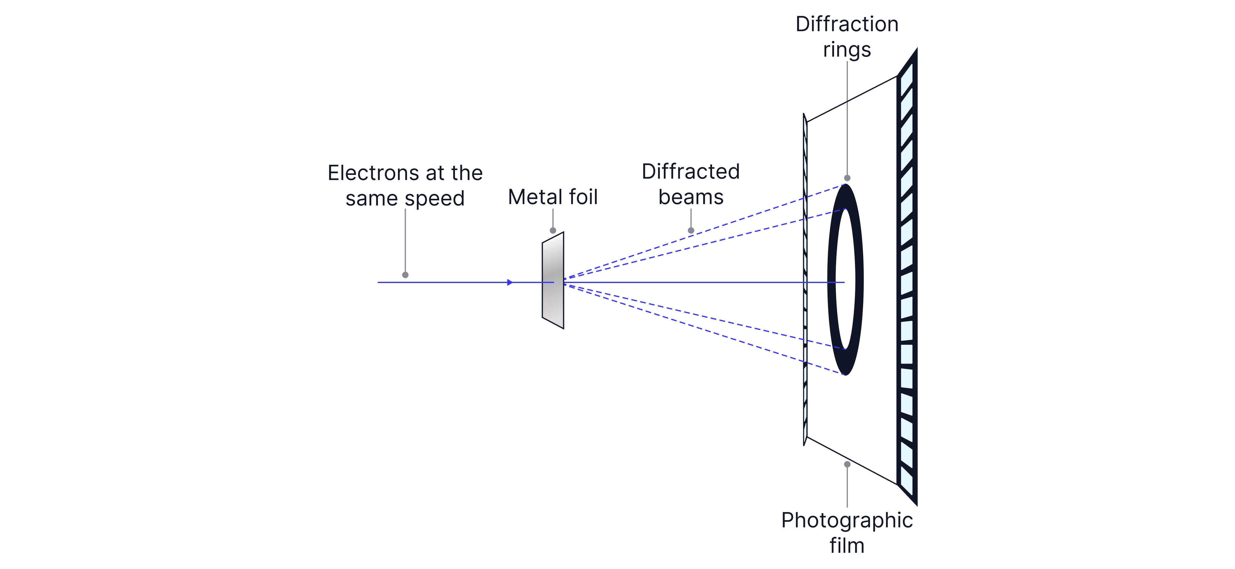 If electrons were only particles, you’d expect them to pass straight through. Instead, when a beam of electrons passes through a thin crystal (e.g. graphite), it produces diffraction patterns (often rings), just like waves diffracting through a grating.