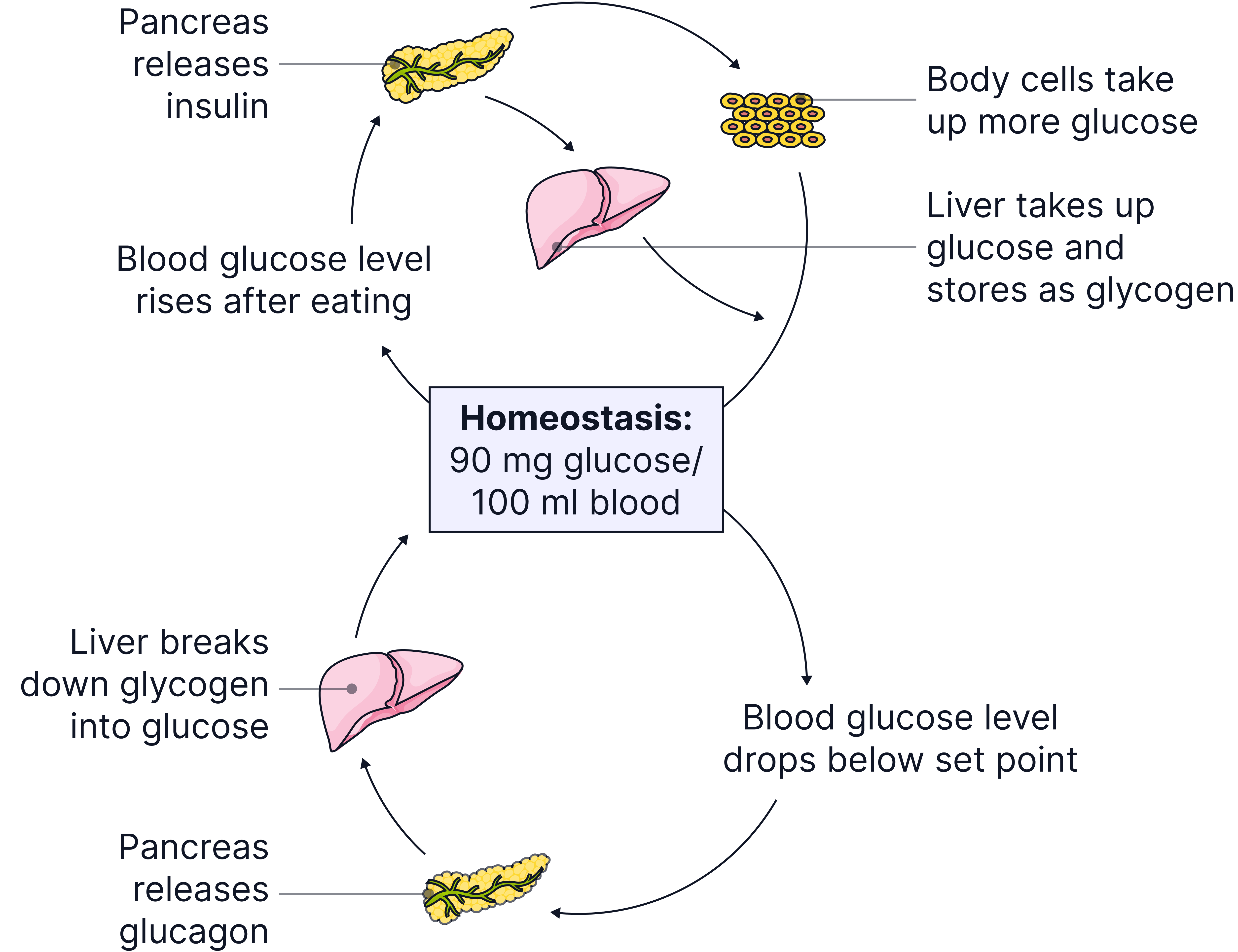Check out this @JoeDoesBiology video that explains blood glucose regulation, then read the study notes. Once you’ve gone through them, don’t forget to try the practice questions!