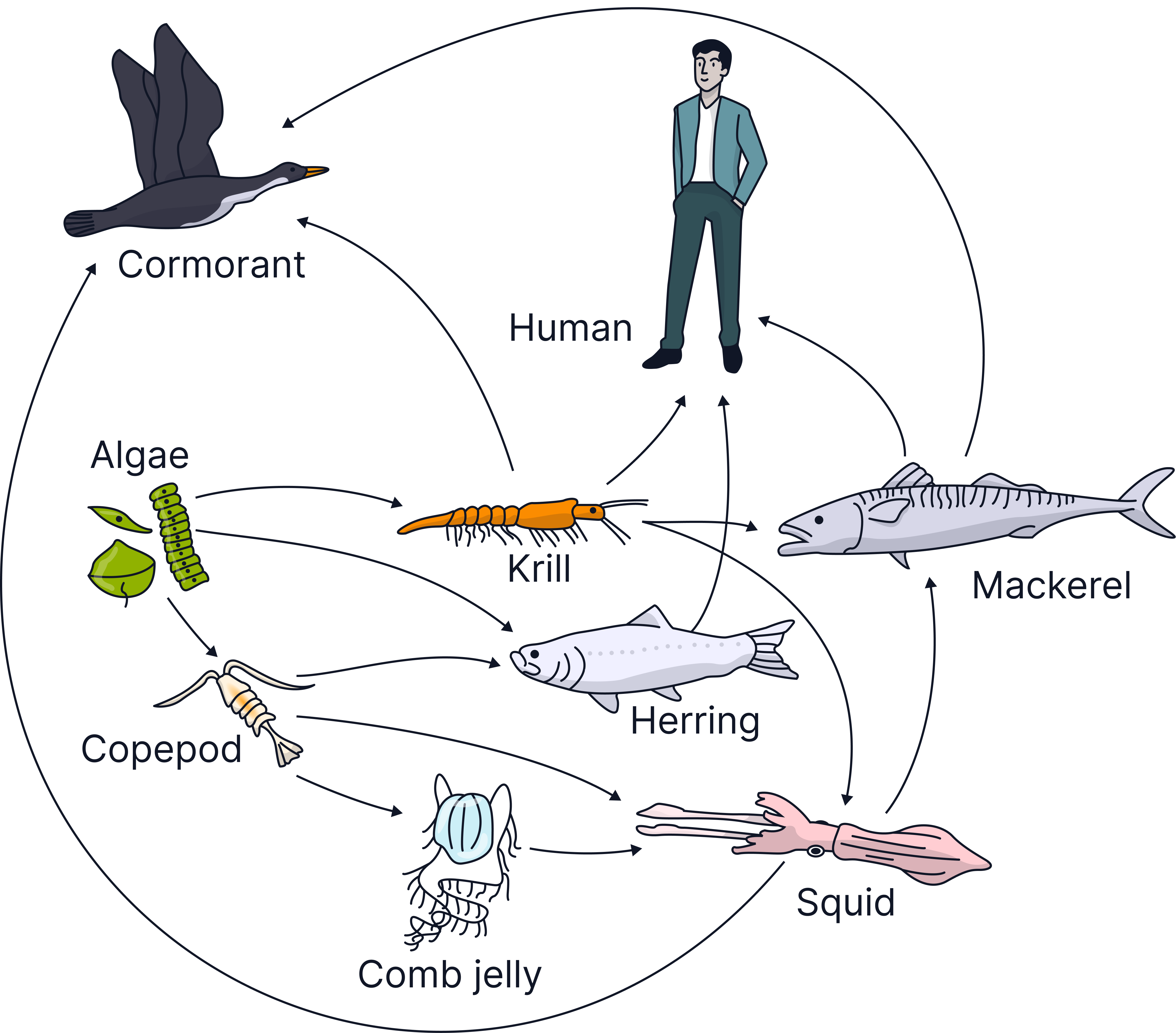 b) Krill / herring / copepod
