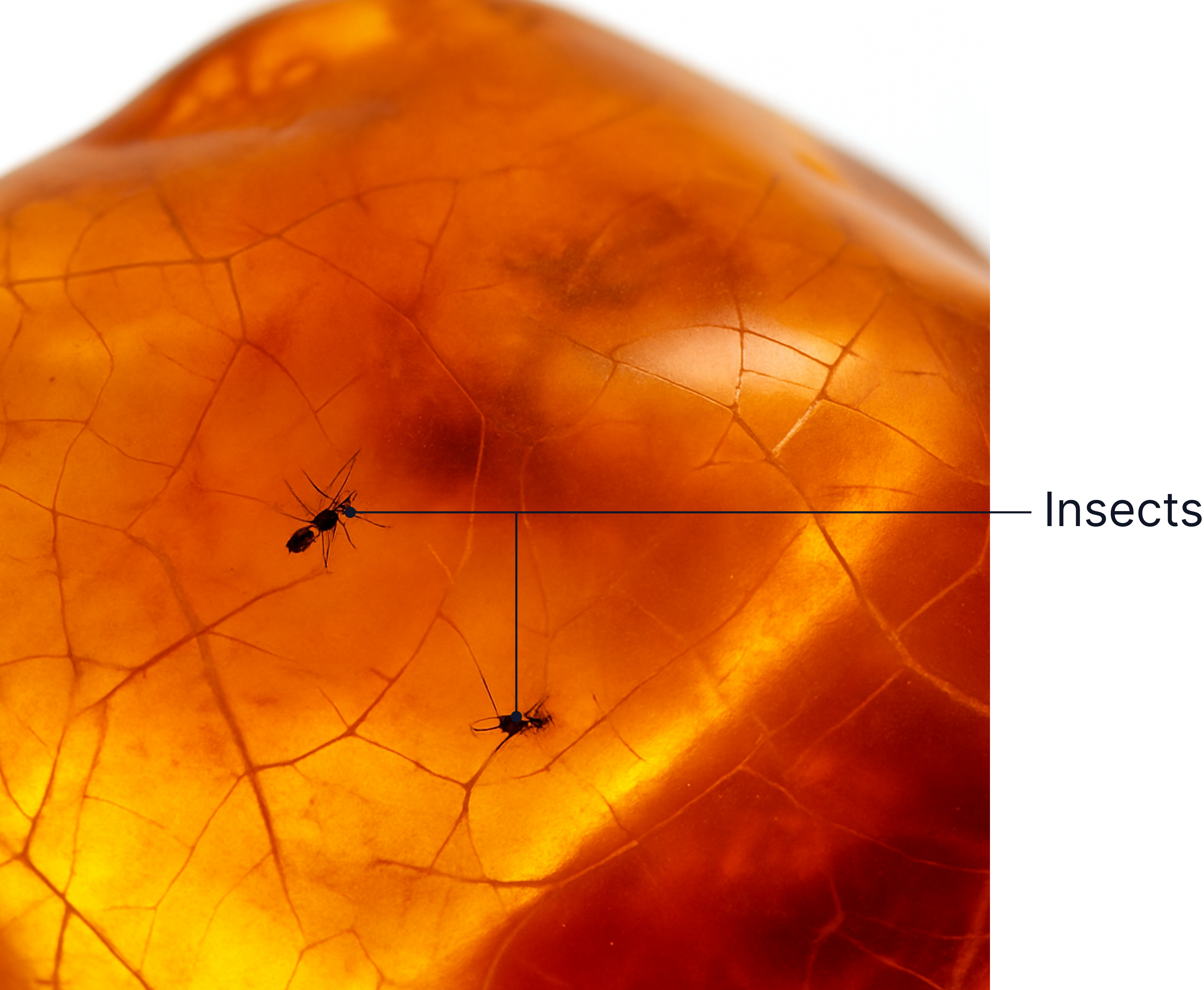 Amber (hardened tree resin): Traps insects and prevents decay.