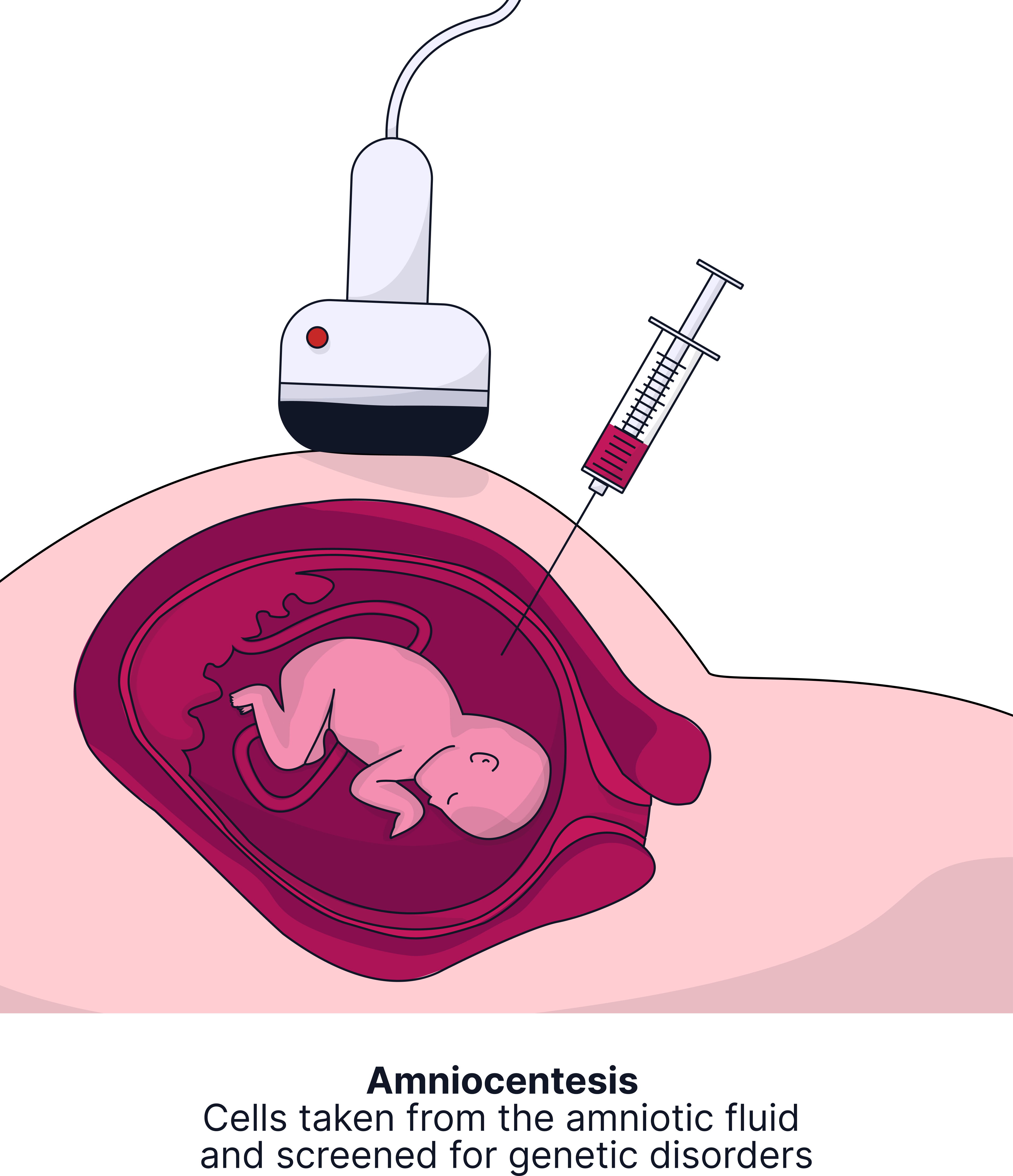 It is also possible to collect DNA from an embryo already in the womb and test for genetic disorders. Amniocentesis is where cells present in the amniotic fluid are collected and checked for any genes that cause genetic disorders. This is only offered where there is a higher risk that the embryo may have a genetic disorder.