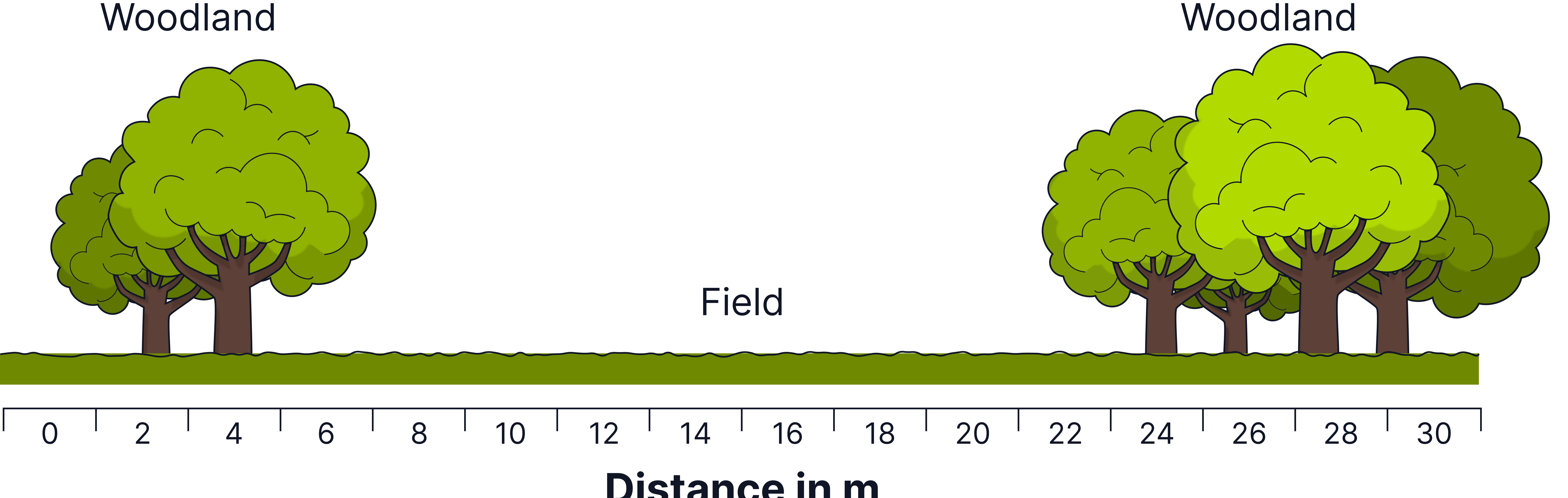 - Mark points at regular intervals along the transect, e.g. every 5 m: 0 m, 5 m, 10 m … up to 50 m.