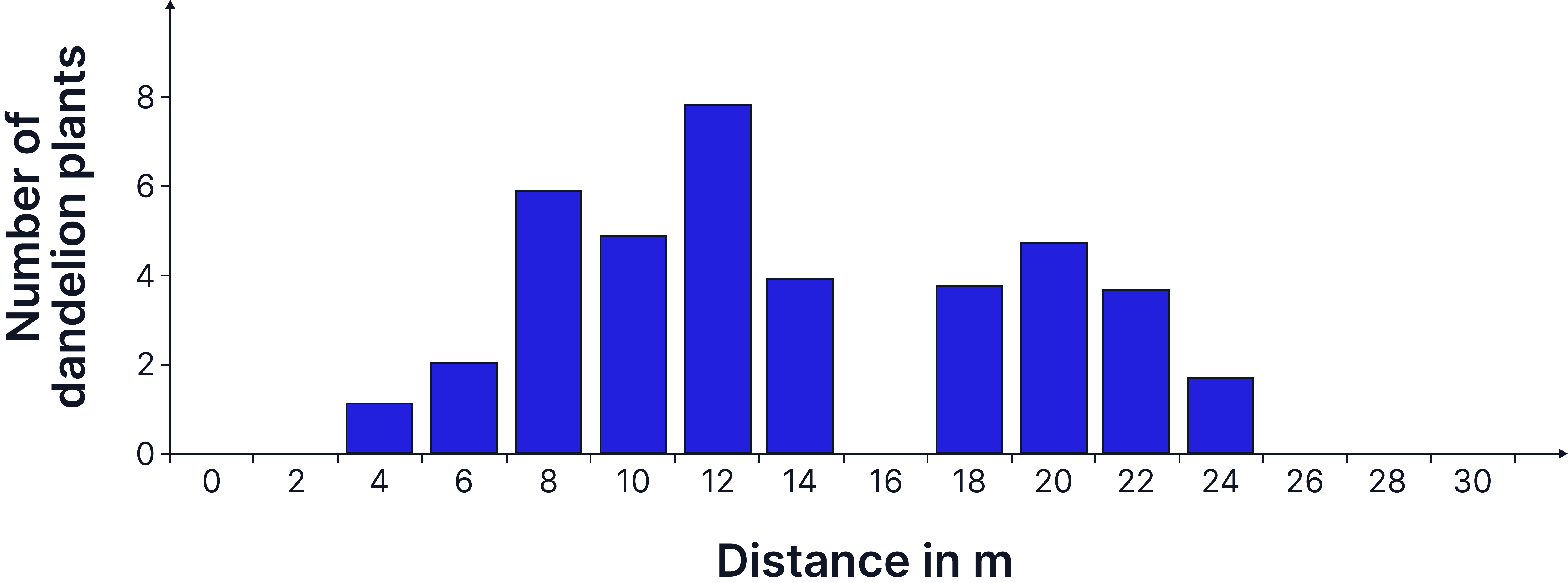 - Calculate the mean number of daisies at each distance using your repeats.