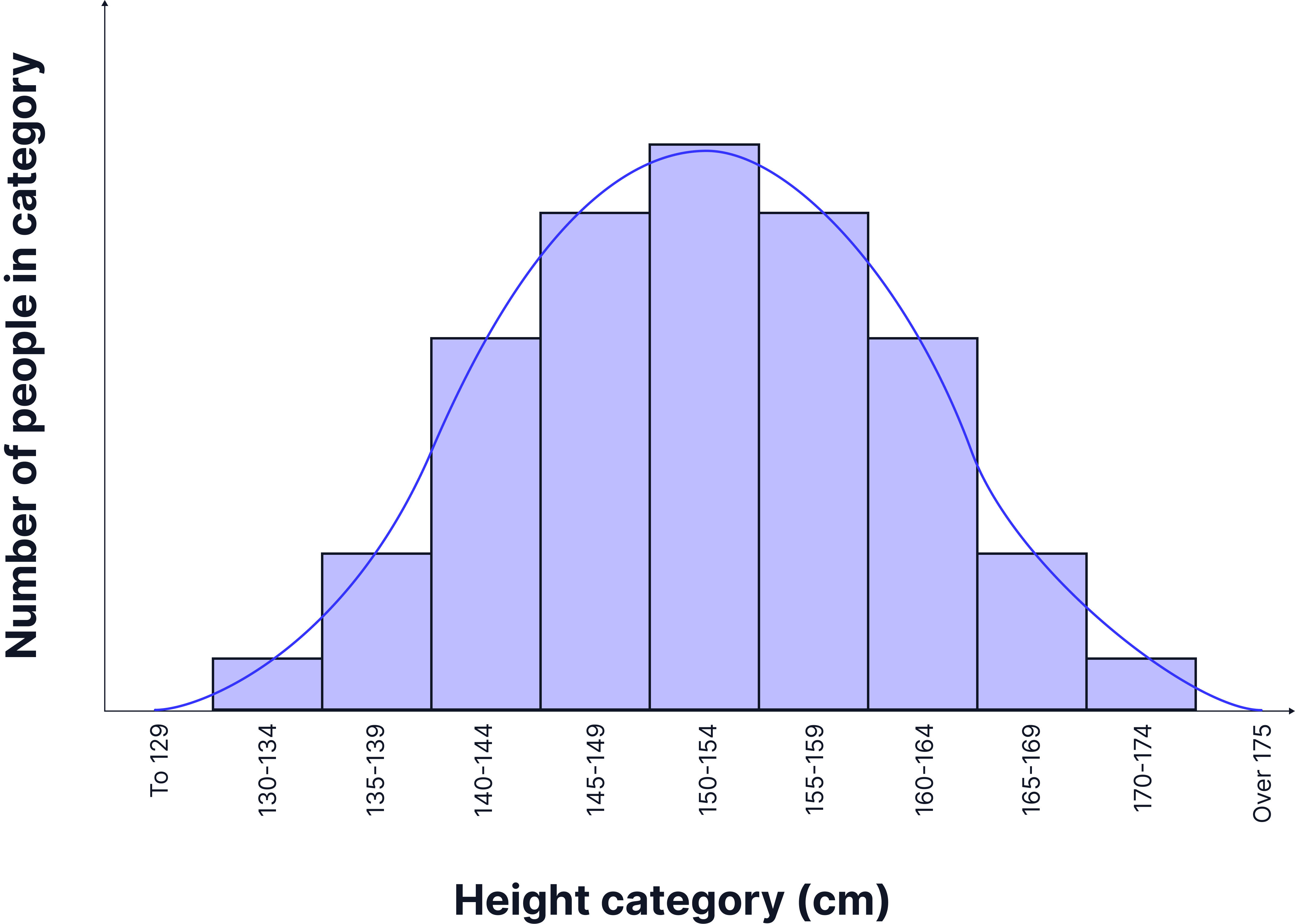 - A histogram with a smooth curve (often bell-shaped, called a normal distribution)