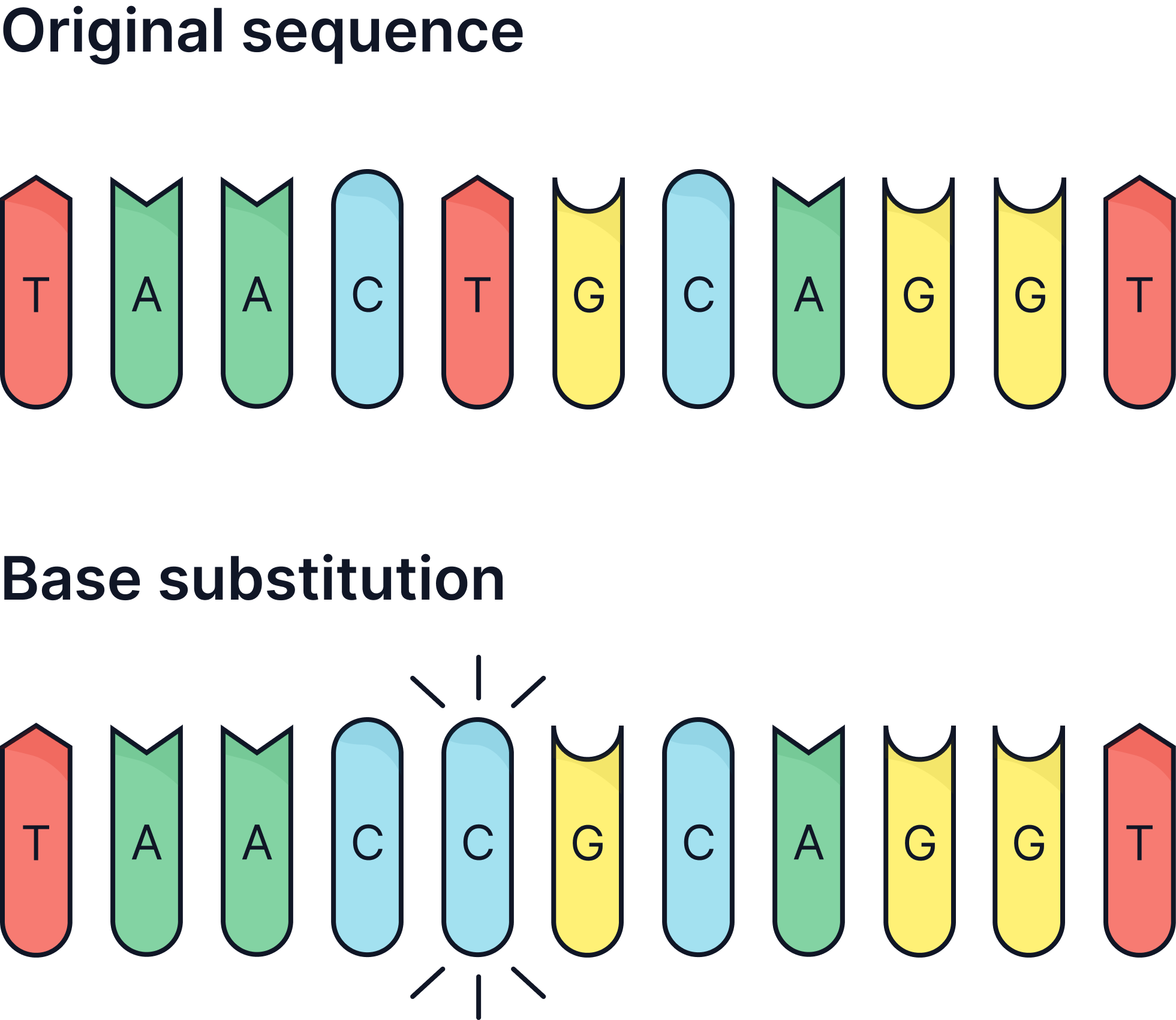 In this example, a T base in DNA has been substituted for a C base. This is a mutation as there has been a change in the DNA base sequence.