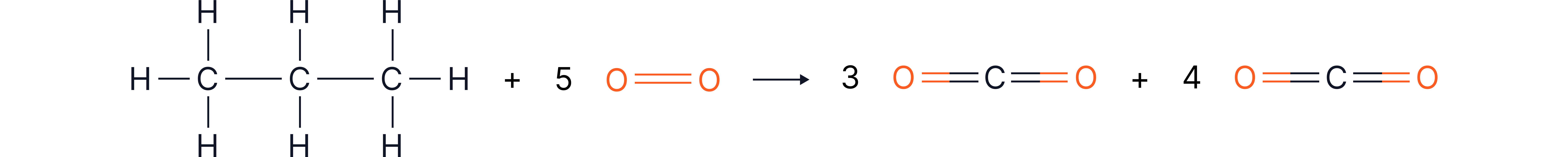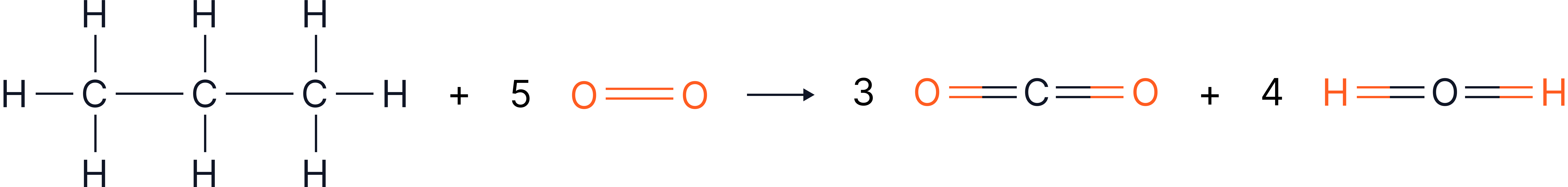 f) Propane () combusts completely in oxygen as follows: