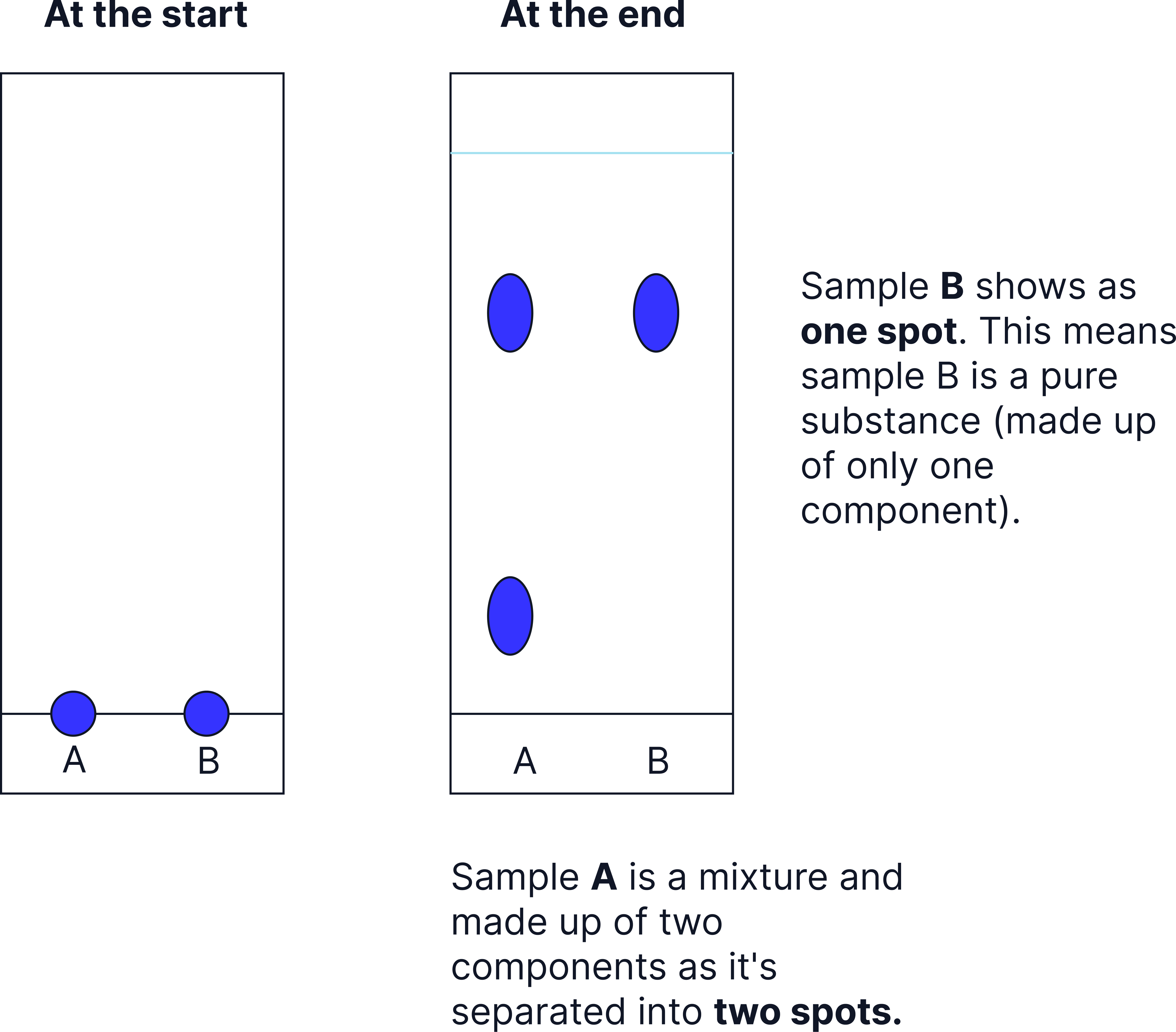 - A mixture will produce two or more spots, because it contains multiple components