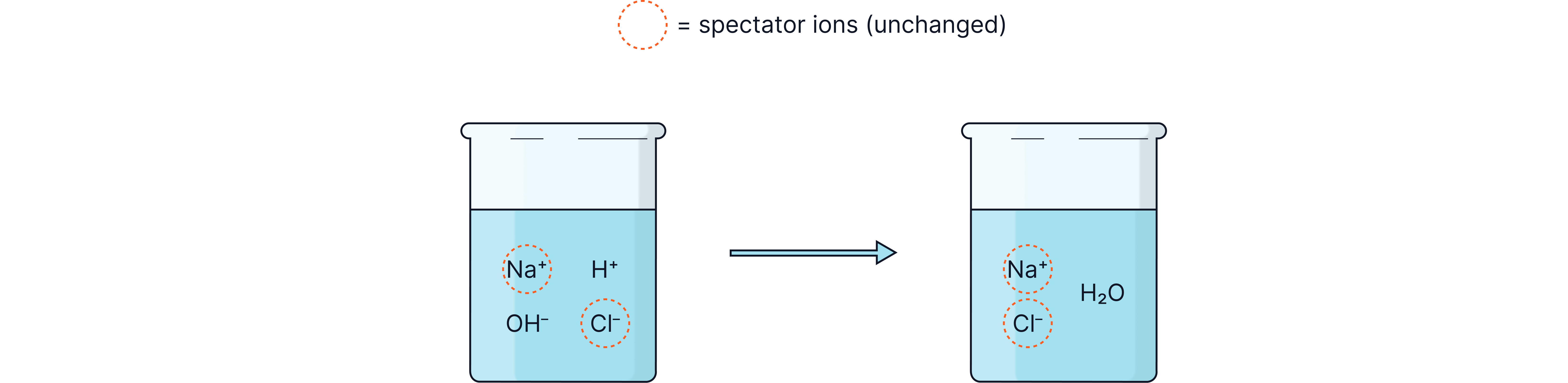 Full: NaOH(aq) + HCl(aq) → NaCl(aq) + H₂O(l)