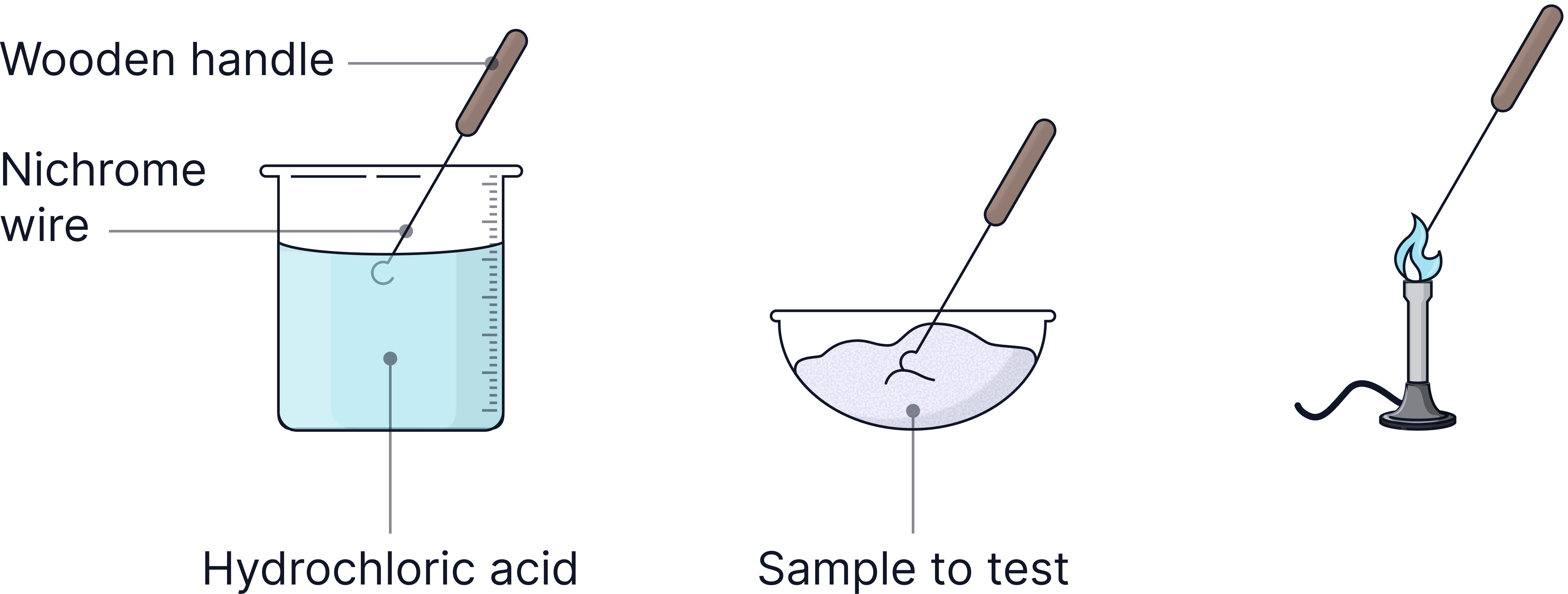 1) Dip a clean Nichrome wire into the solution – cleaned using hydrochloric acid.